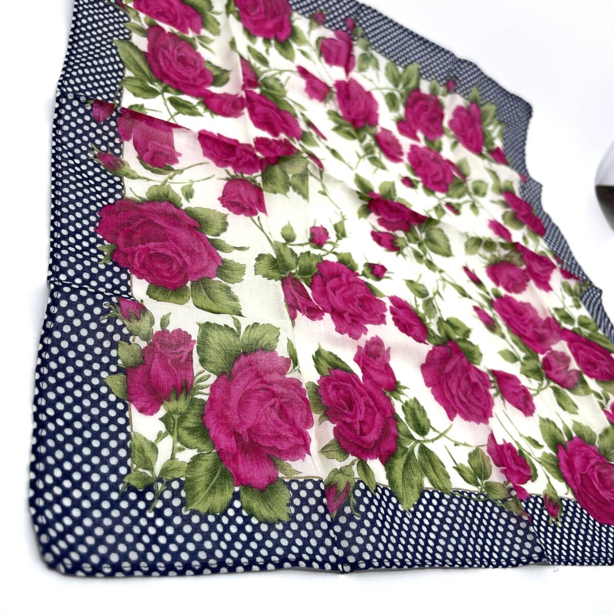 ハンカチ バンダナ ネイビー×ピンク系 花柄 フラワー 薔薇 バラ ドット ラグジュアリー エレガント