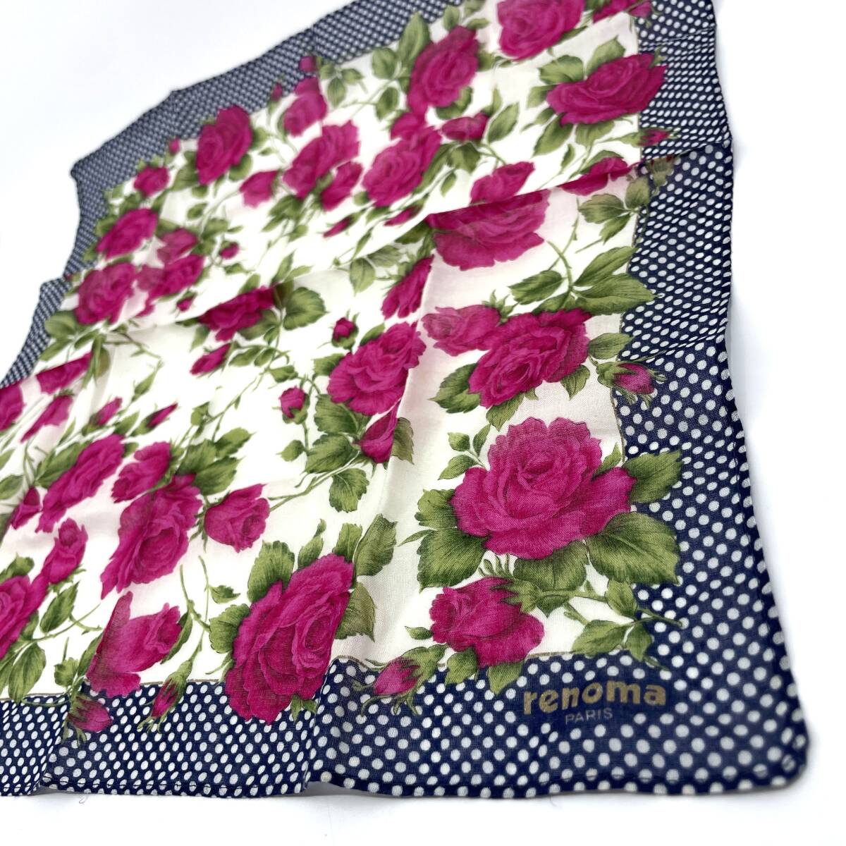 renoma レノマ ハンカチ バンダナ ネイビー×ピンク系 花柄 フラワー 薔薇 バラ ドット ラグジュアリー エレガント
