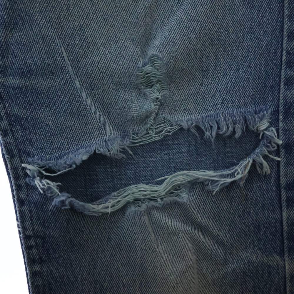 前身頃左ポケット/両膝/両足裾口に破れ有り