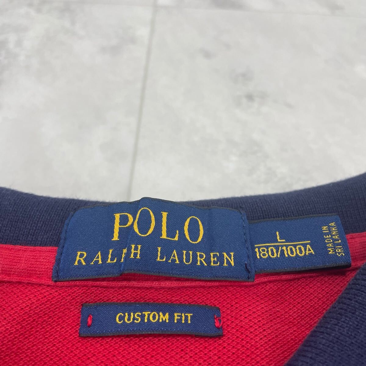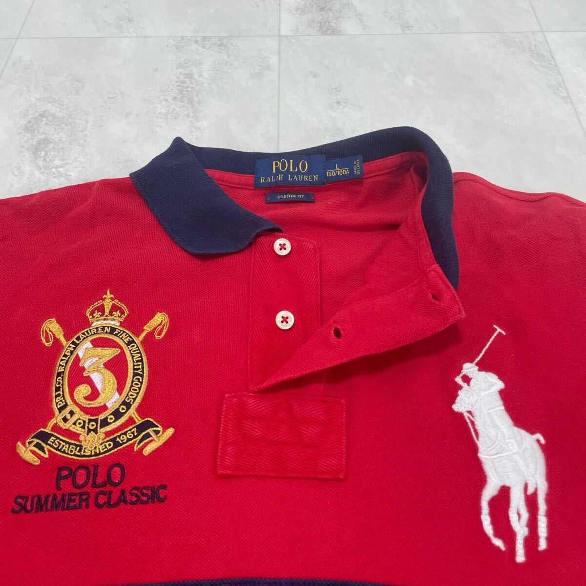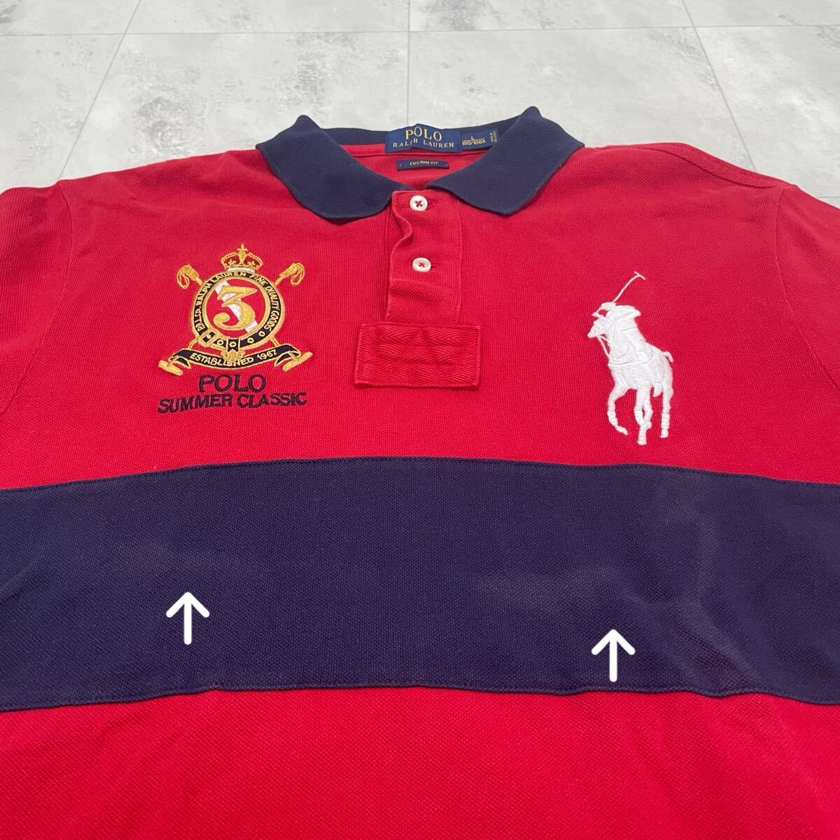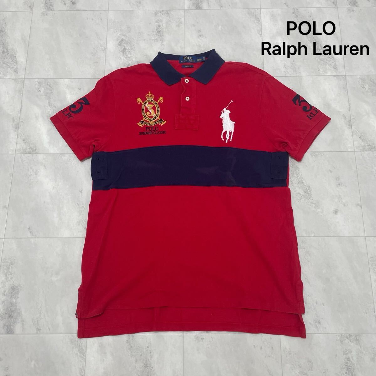 POLO Ralph Lauren ポロラルフローレン ポロシャツ 半袖 ボーダー ビッグポニー 刺繍ロゴ カスタムフィット USA企画 レッド 玉SS3745