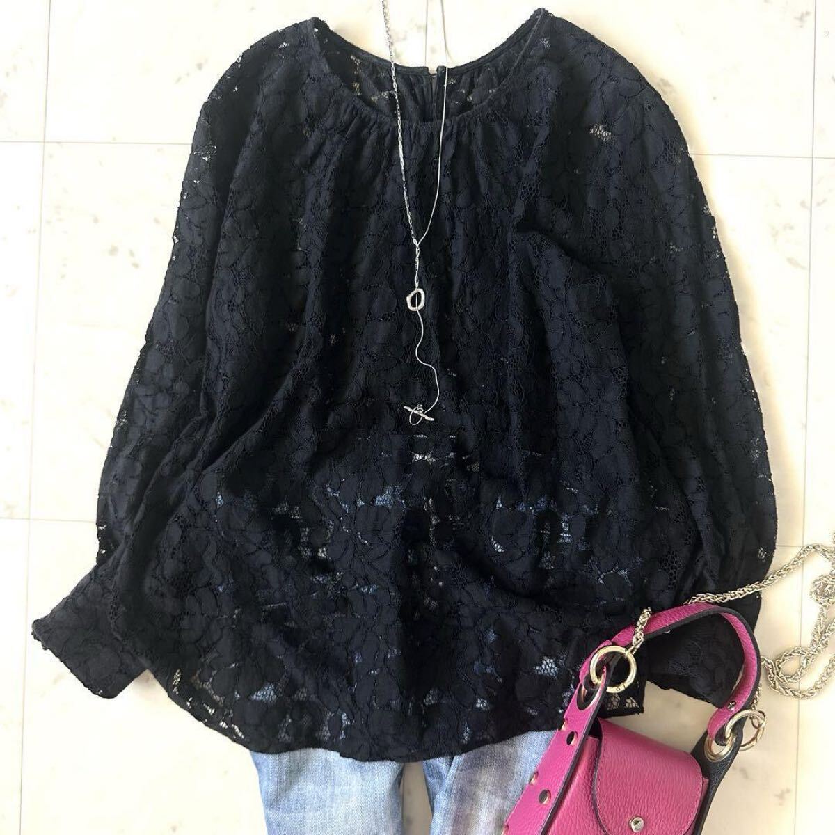 甘すぎず、大人の上品さが香るブラックレースブラウス。