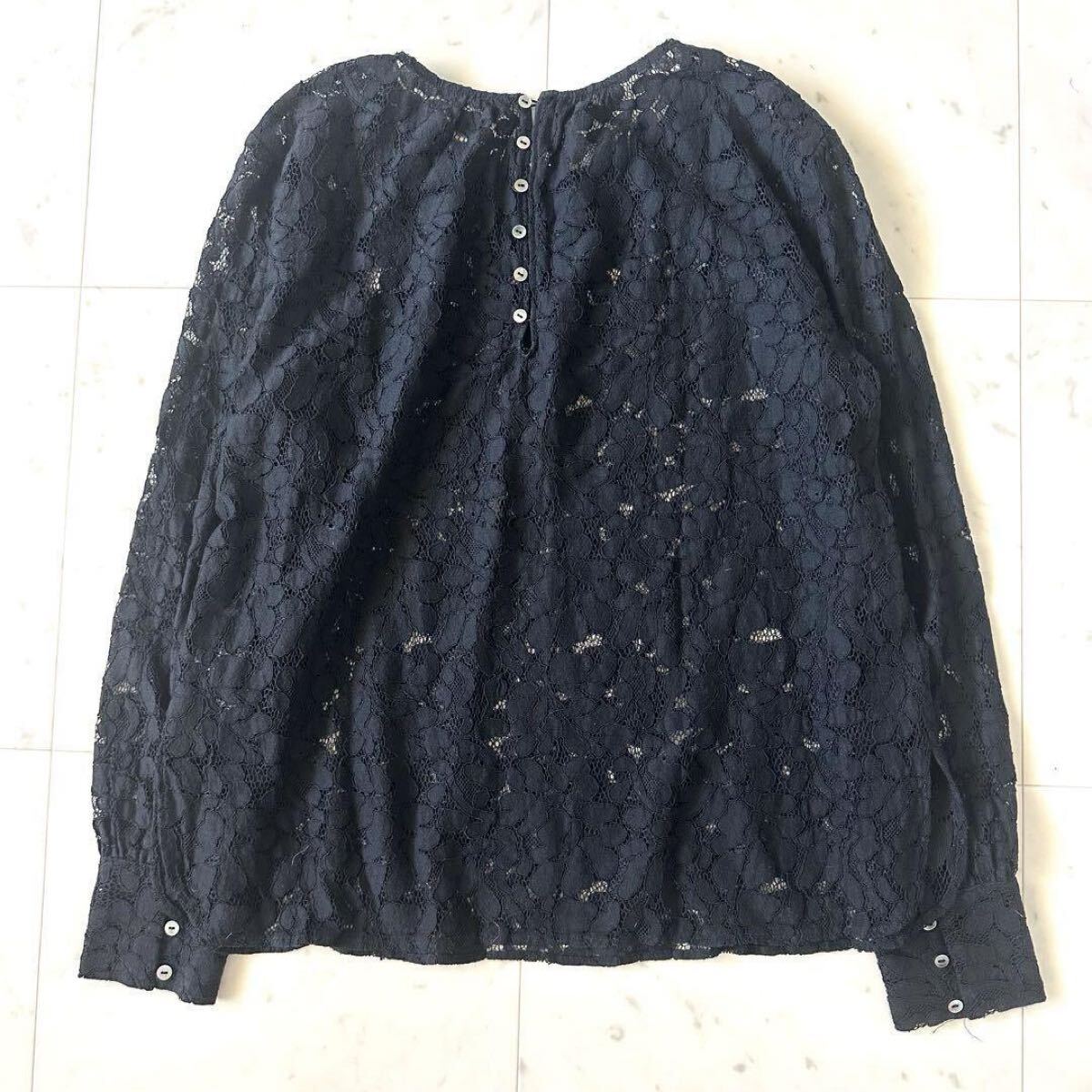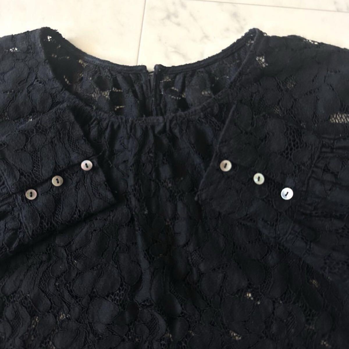 やや透け感のあるレースに、バック&袖口のシェルボタンがさりげないアクセント。