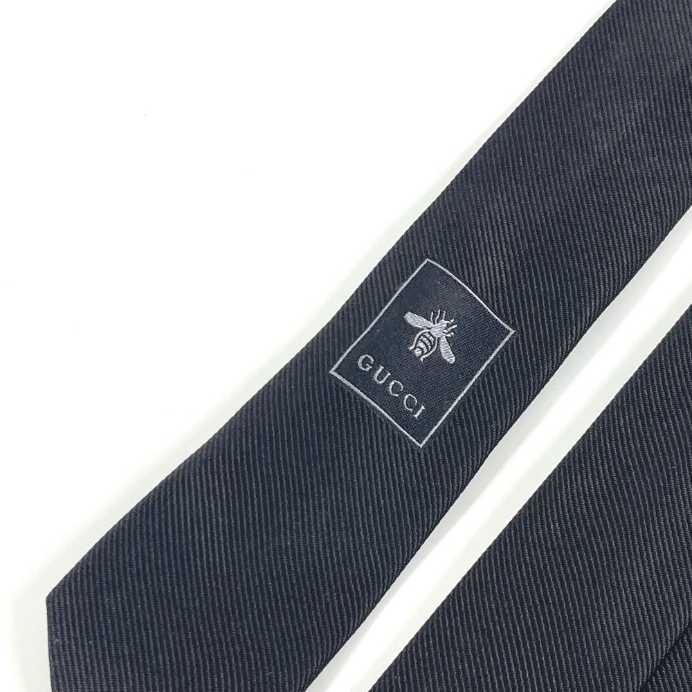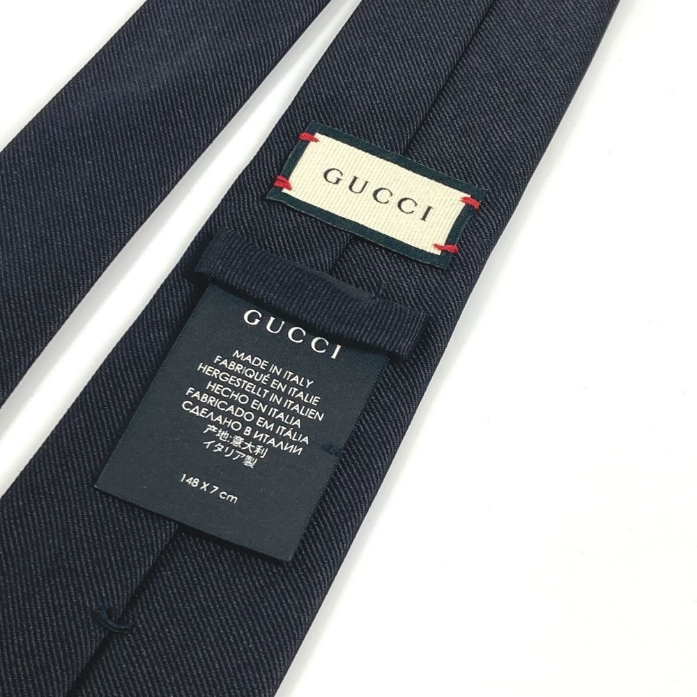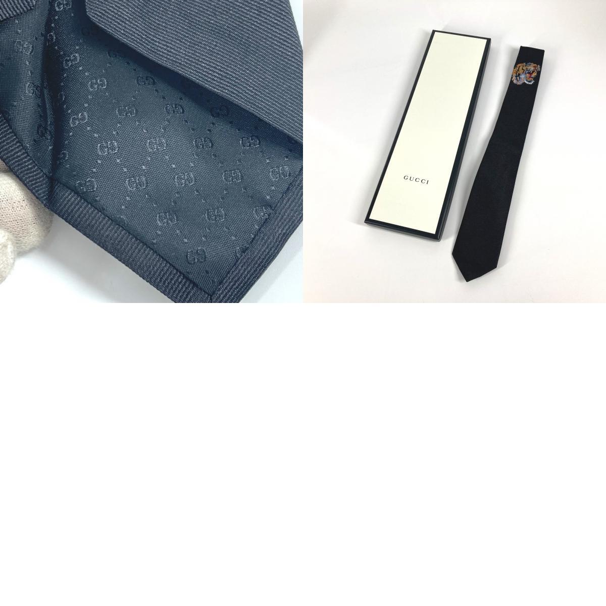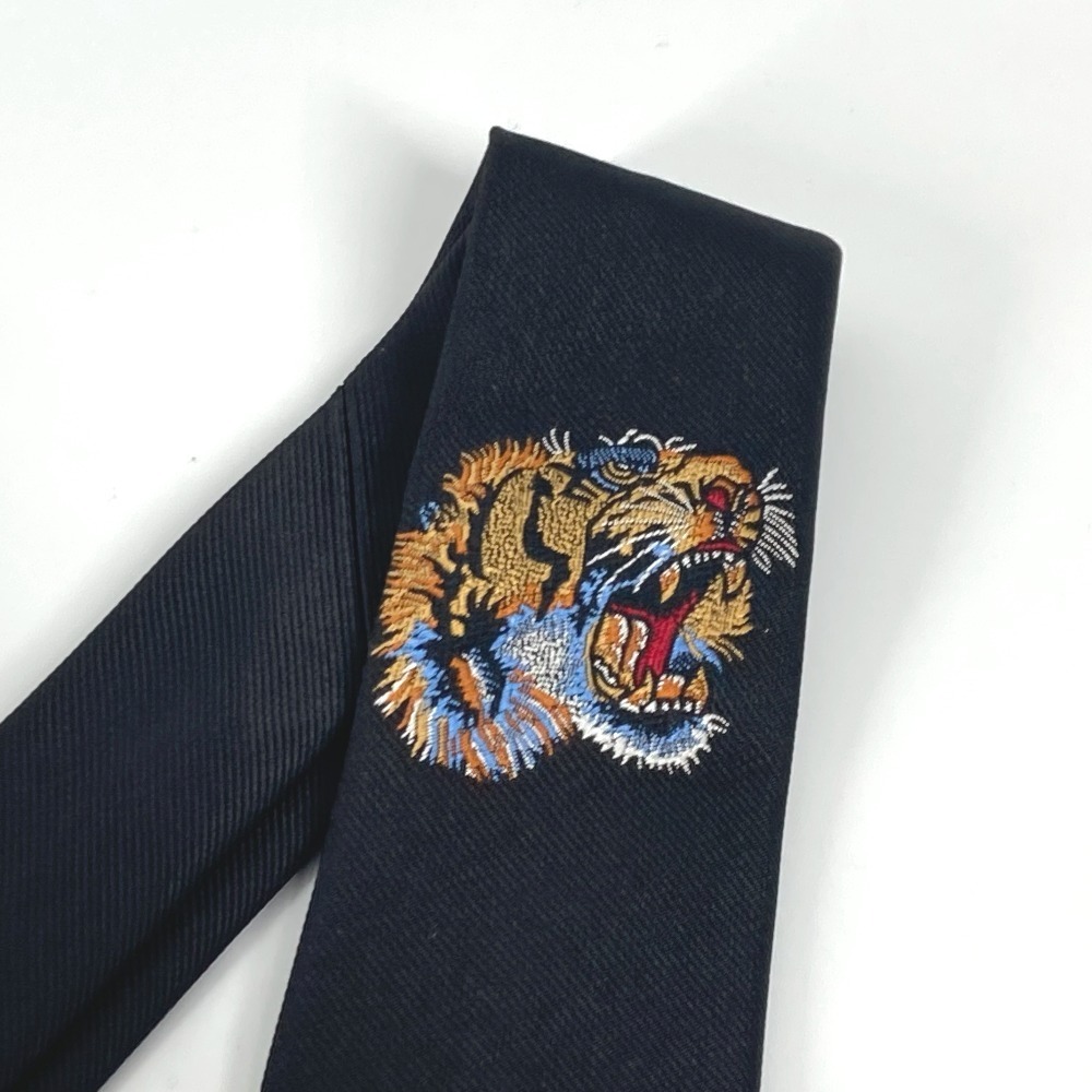 新品同様 GUCCI グッチ タイガー 刺繍 虎 アニマル アクセサリー ネクタイ ブラック メンズ【中古】