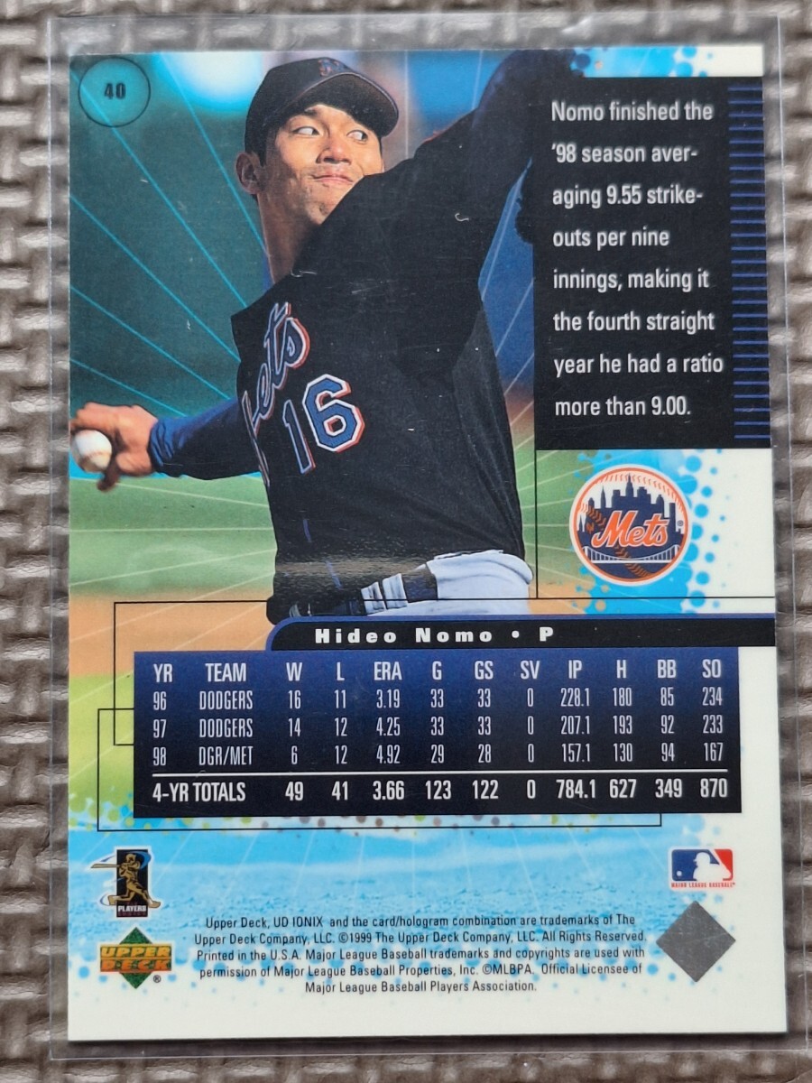 1999 Upper Deck IONIX #40 HIDEO NOMO New York Mets Los Angeles Dodgers Kintetsu Buffaloes