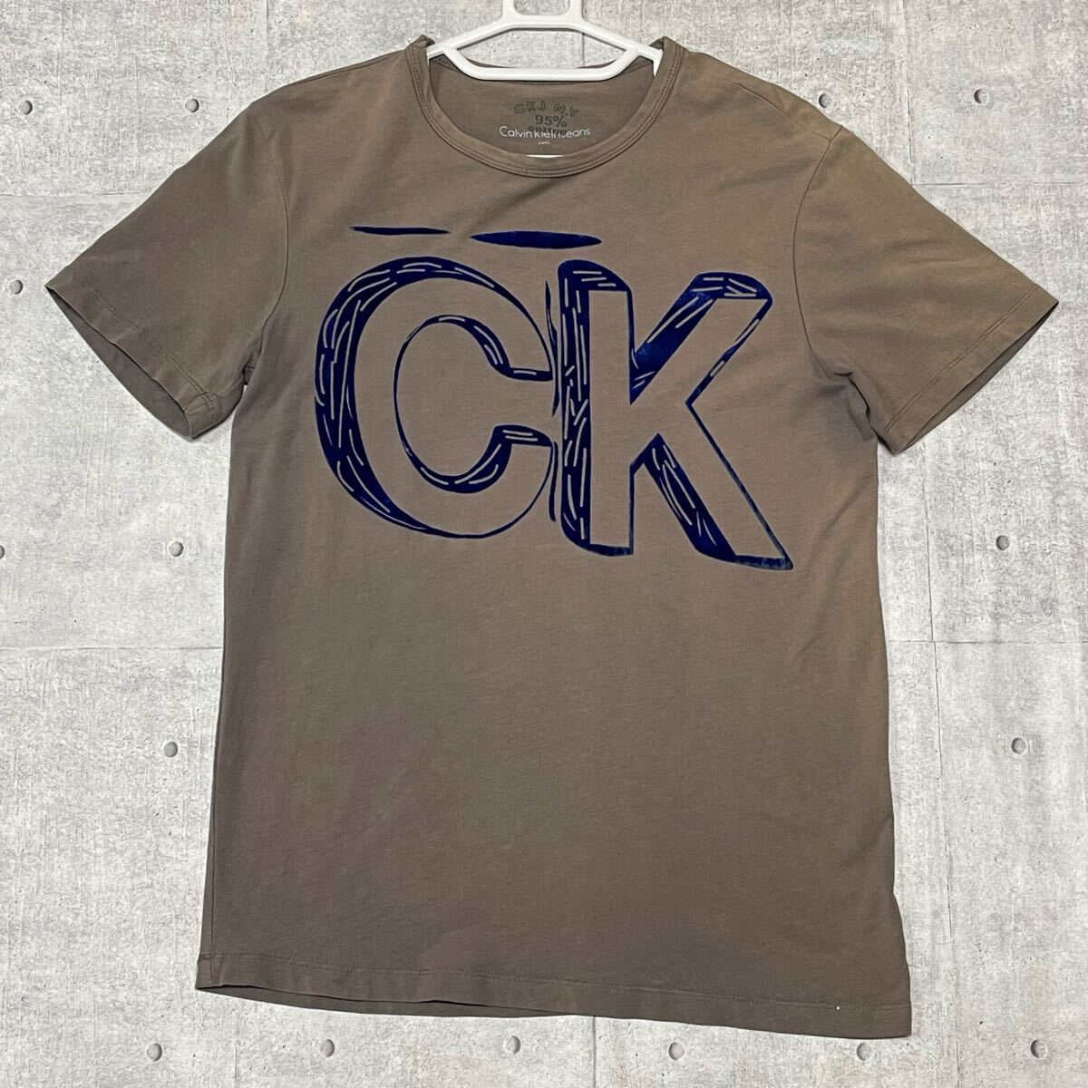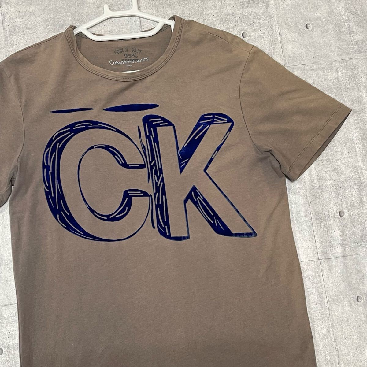 Calvin Klein jeans CK フェルトビッグロゴ Tシャツ   カルバンクラインジーンズ デカロゴ ビッグロゴ USA企画 ストレッチ 早5601