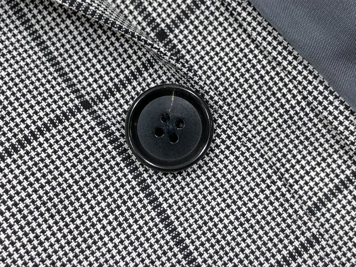 ・ジャケット・・・着丈(襟下から背中心で)約72センチ、身幅約51センチ、肩幅(直線で)約44センチ、袖丈約61センチ、ウエスト幅(第1ボタン付近で)約47センチ