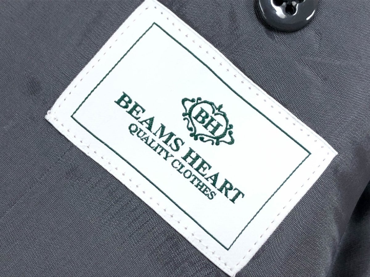 極美品【ビームスハート BEAMS HEART】 41-17-0286-015 シングル2ボタンスーツ (メンズ) size48 グレー×ブラック 織柄 ◯33RMS1394○