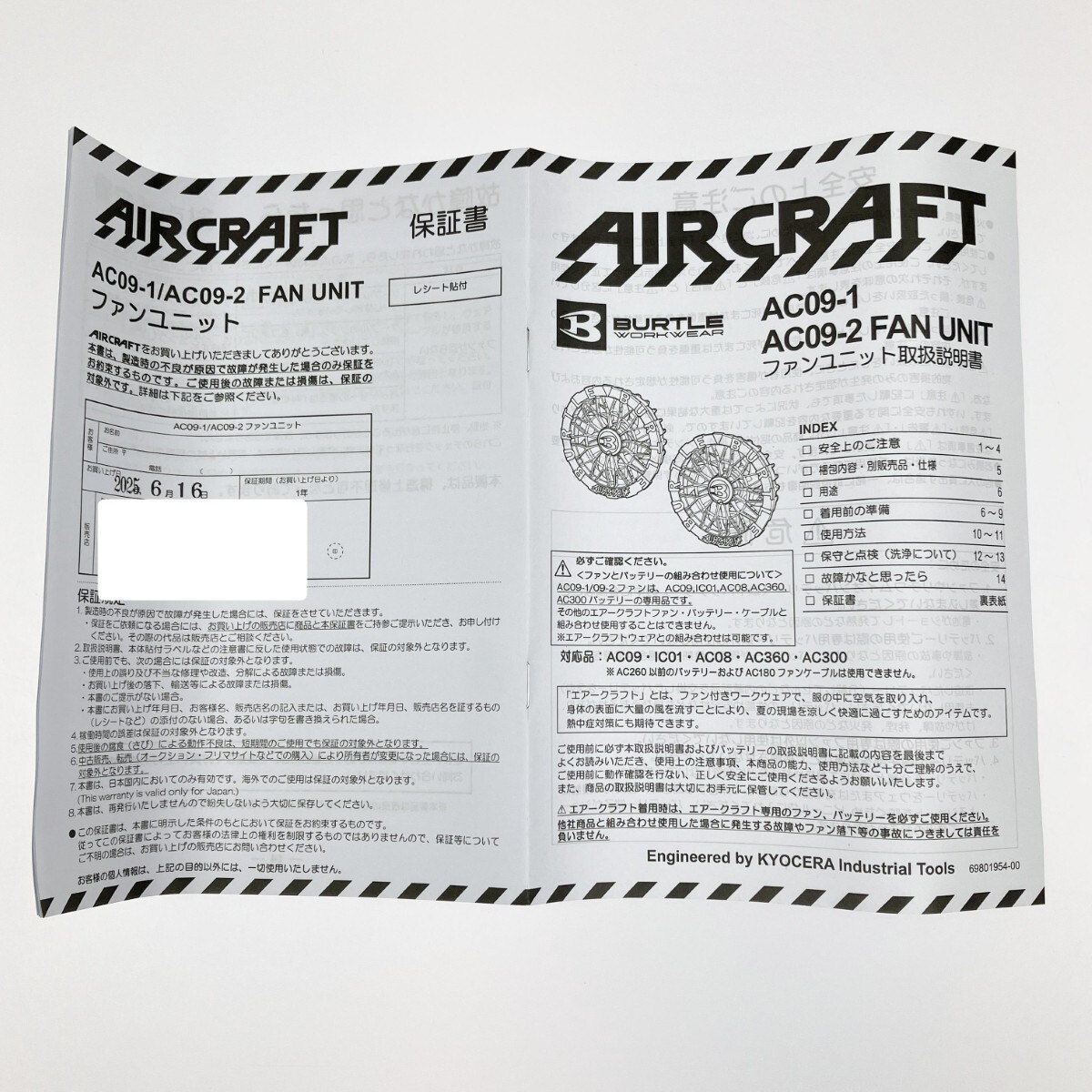 ▽▽ BURTLE 京セラ エアークラフト専用ファンユニット+バッテリーセット AC09-2・AC09 目立った傷や汚れなし