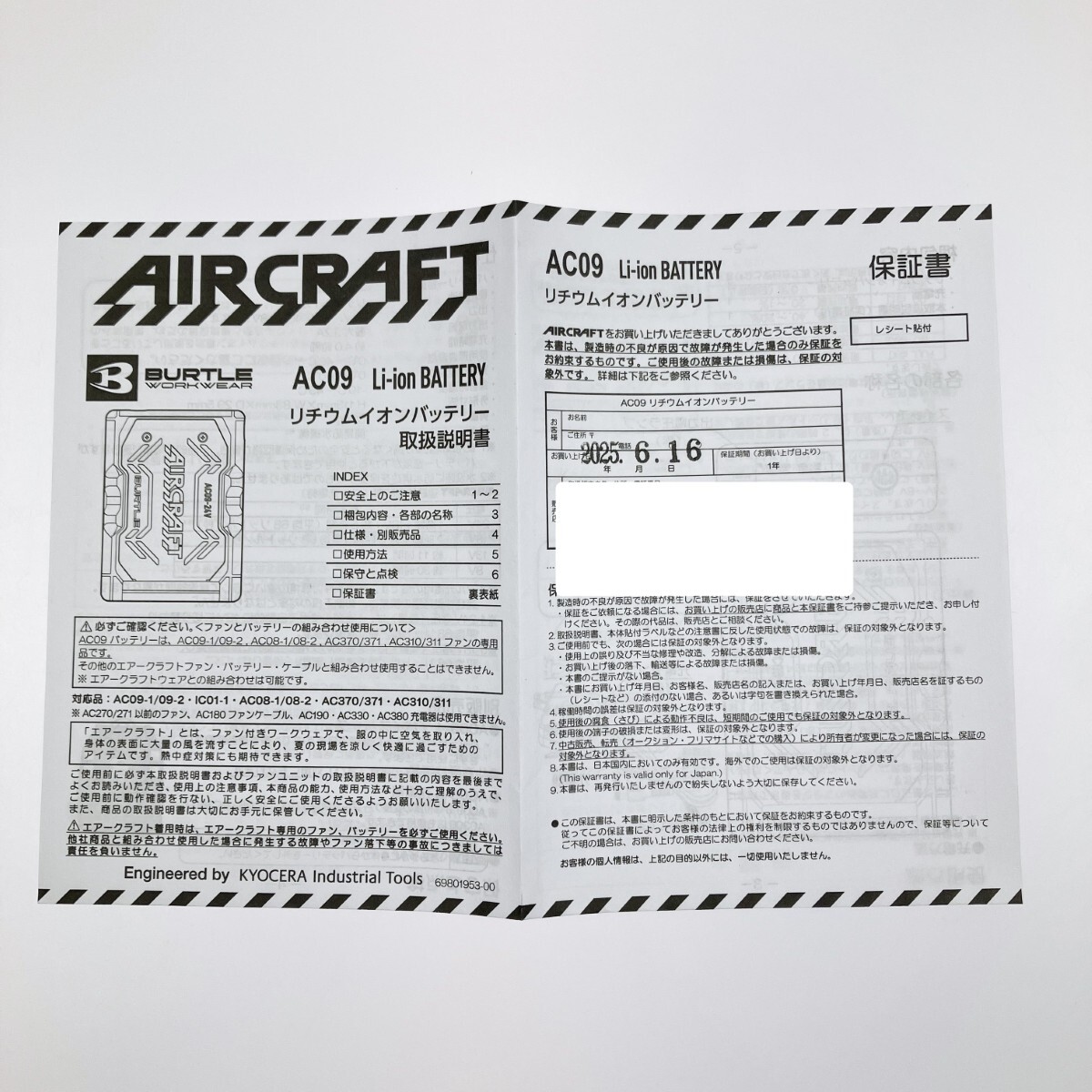 【付属品】付属品完備 保証書には購入店印及び購入日(2025年6月16日)の記載有り