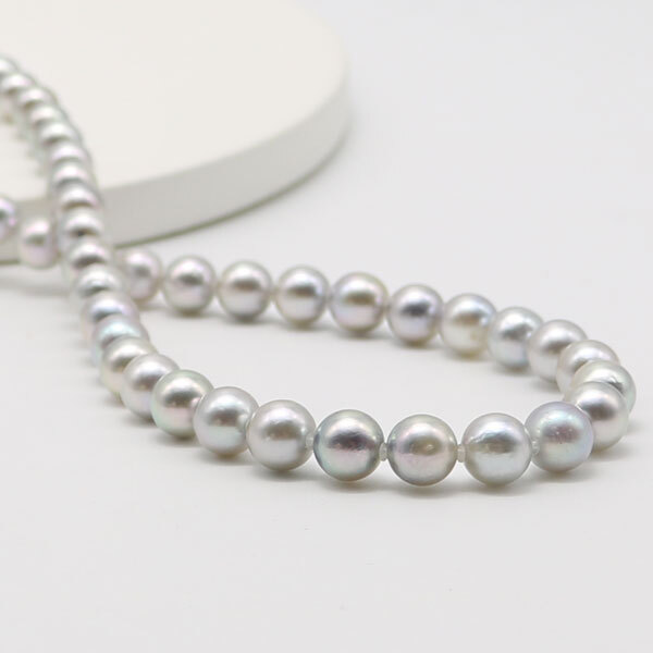 ナチュラルグレー基調に青みと赤みが入り、ナチュラルパール特有の透明感のある輝きです。日本産アコヤ真珠ならではの上品で清楚な輝きです。 | |||