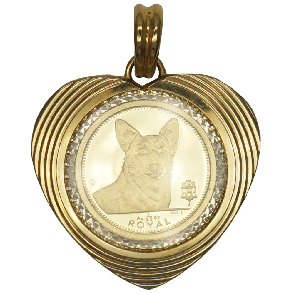 商品名 | 【中古AB/使用感小】 ペンダントトップ 純金 ロイヤルドッグコイン コーギー 犬 1/25オンス 1/25oz 1991年 エリザベス2世 メダル コイン:K24/枠:K18 ペンダントトップ 20250630 20536109006 | ||||||
