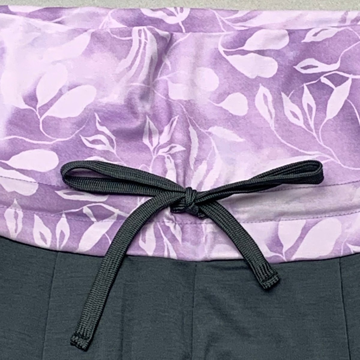 長めに作られた総柄ウエストは好みの長さ調節でき、気になるウエストをカバーします。