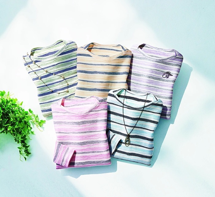 商品説明 | ・・春から夏までさらりと着られる綿混タックジャカードのボートネックプルオーバー ・特殊な紡績方法で彩りの良い杢調表現が特徴の「リバーエース」を使用して、色の重なりがきれいな表情豊かなタックジャカード ・一枚でも、インナーとしても活躍してくれるベーシックな7分袖のデザインで季節を越えて重宝するアイテム ・さらっとした綿混素材で着心地もやわらか |