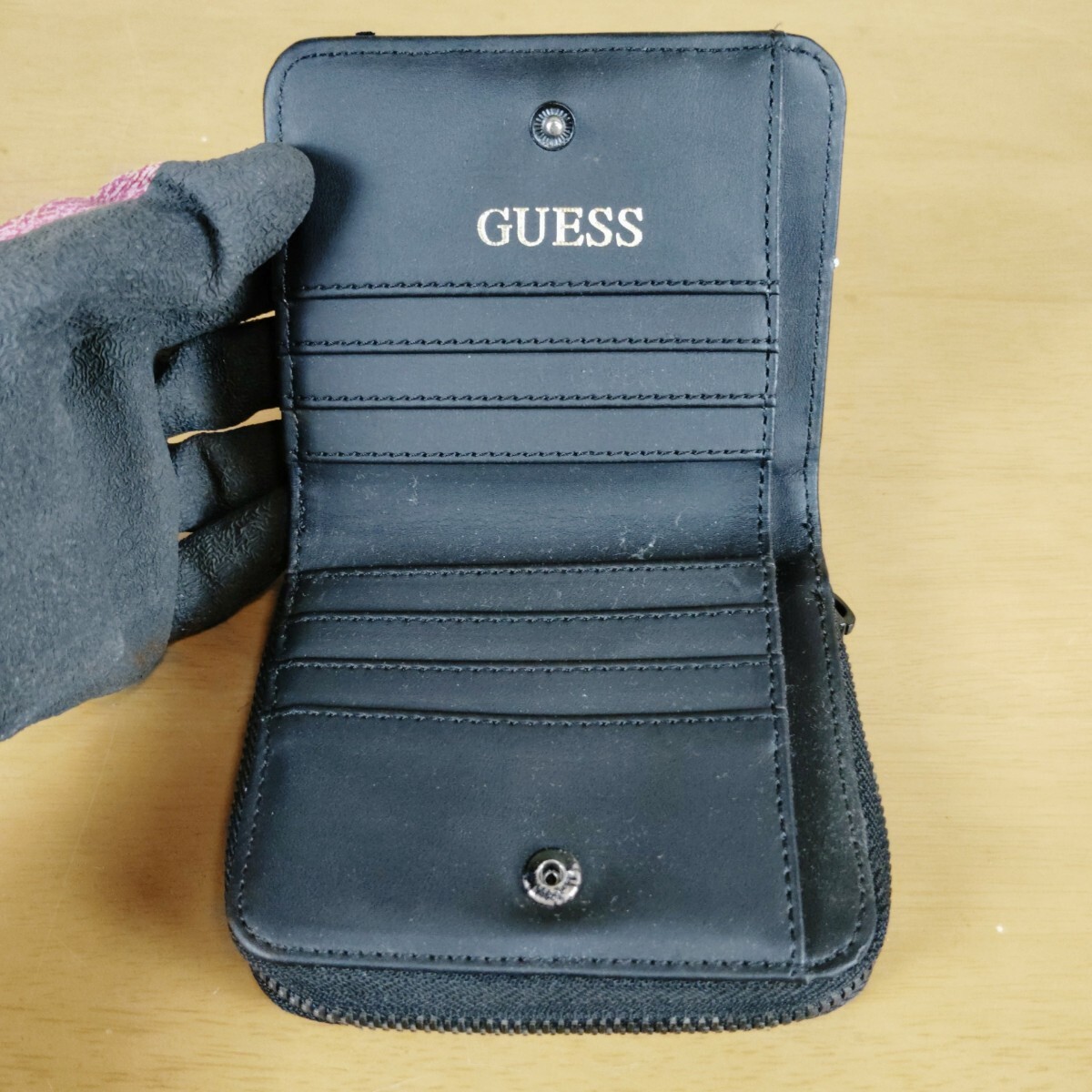 GUESS ゲス 二つ折り財布 がま口 ラウンドファスナー ブラック