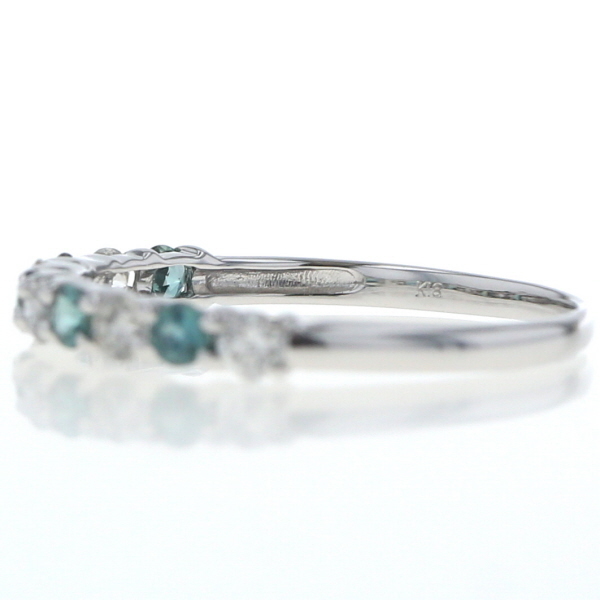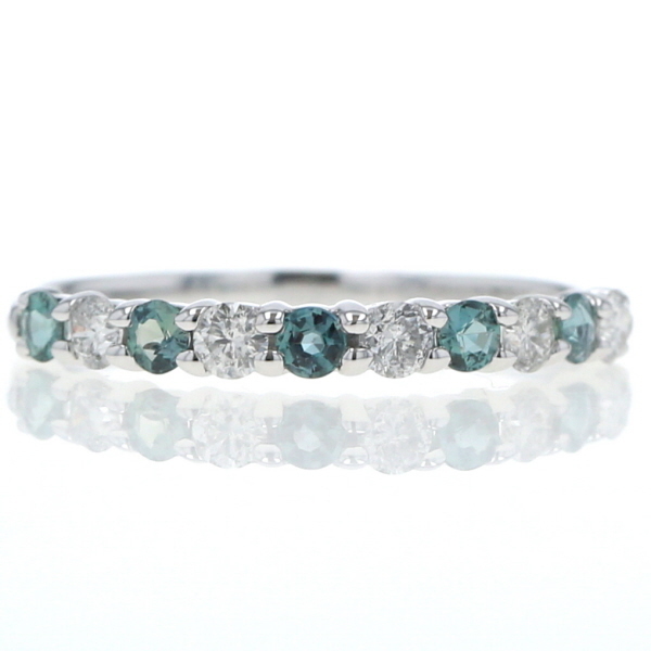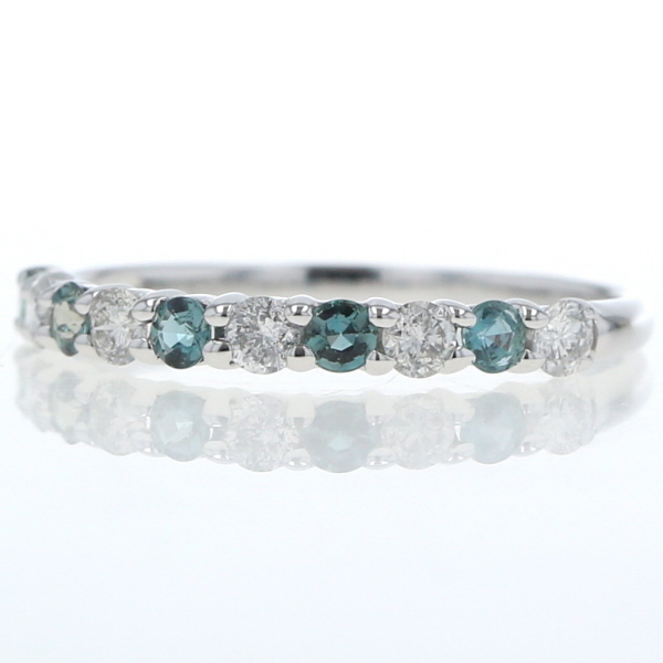 商品紹介 | 光の当たり方により色を変えるアレキサンドライトがあしらわれた上品なデザインのホワイトゴールドリングです。 |