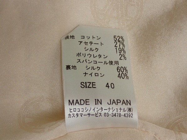 | 色 ベージュ 素材 表地 コットン52% アセテート27% シルク19% ポリウレタン2% 裏地 シルク60% ナイロン40% | |