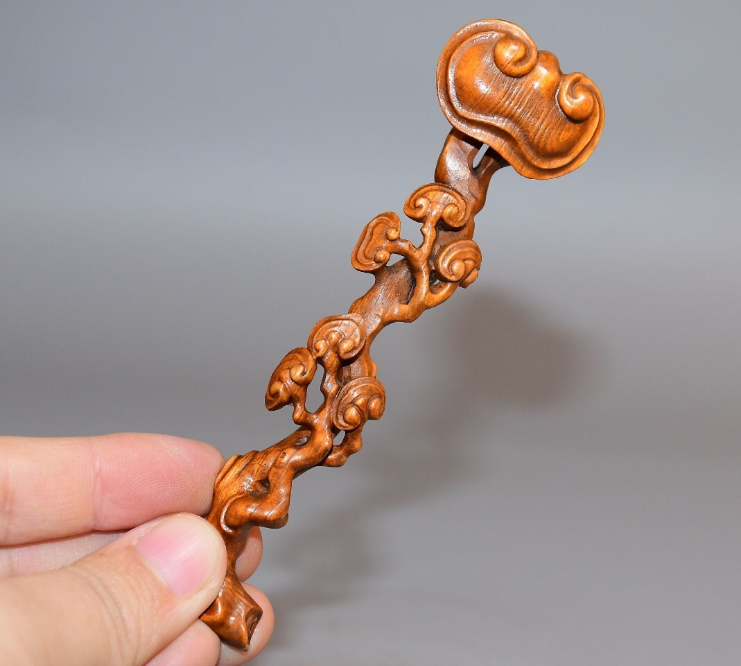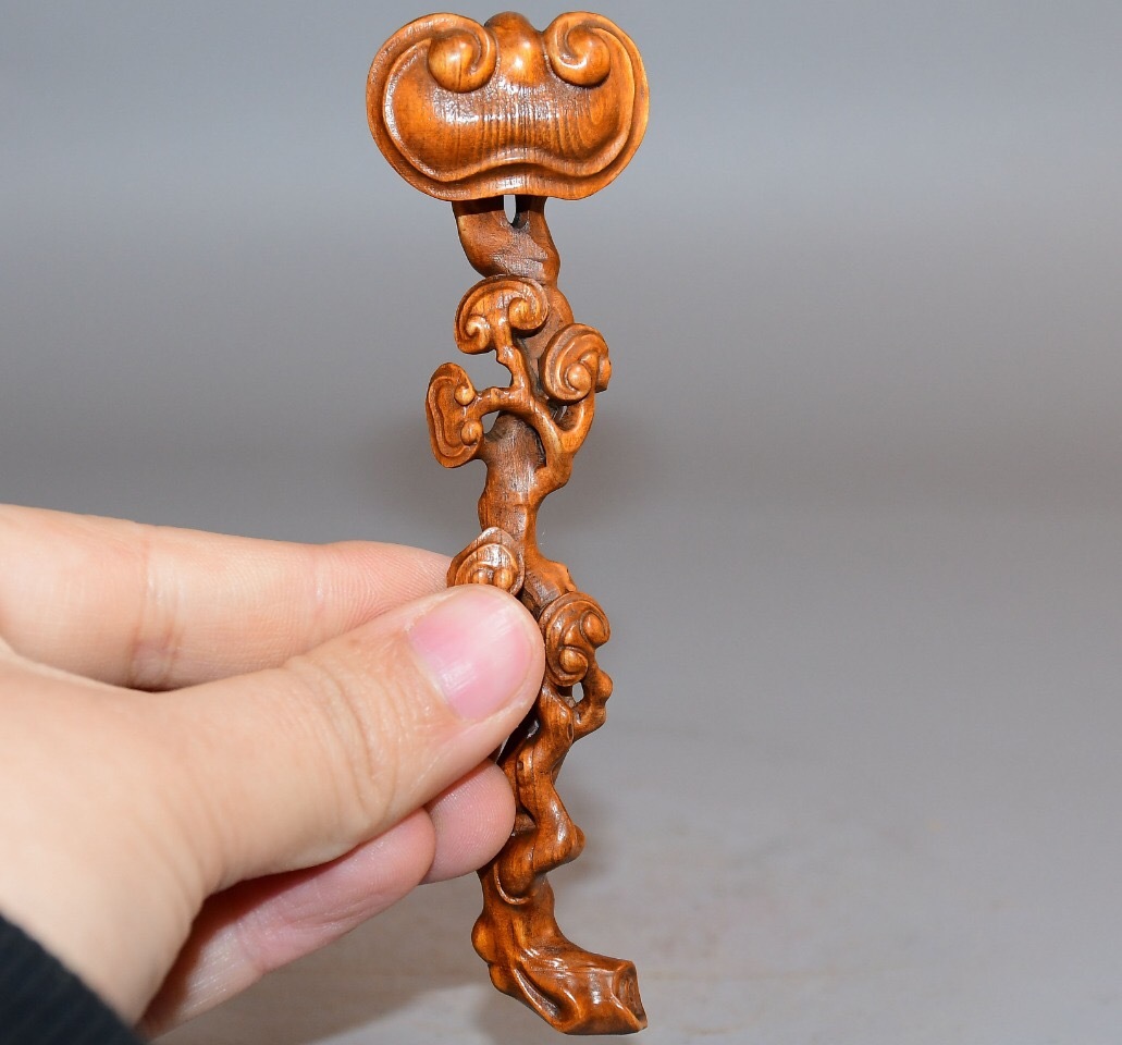 【超珍館蔵】黄楊木製 細密彫 如意 置物 賞物 古賞物 古董品 古美術品 時代物 旧家蔵出 稀少珍蔵品