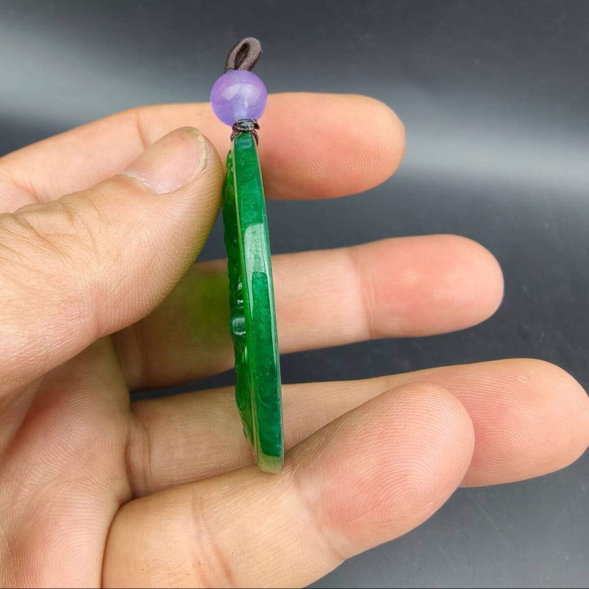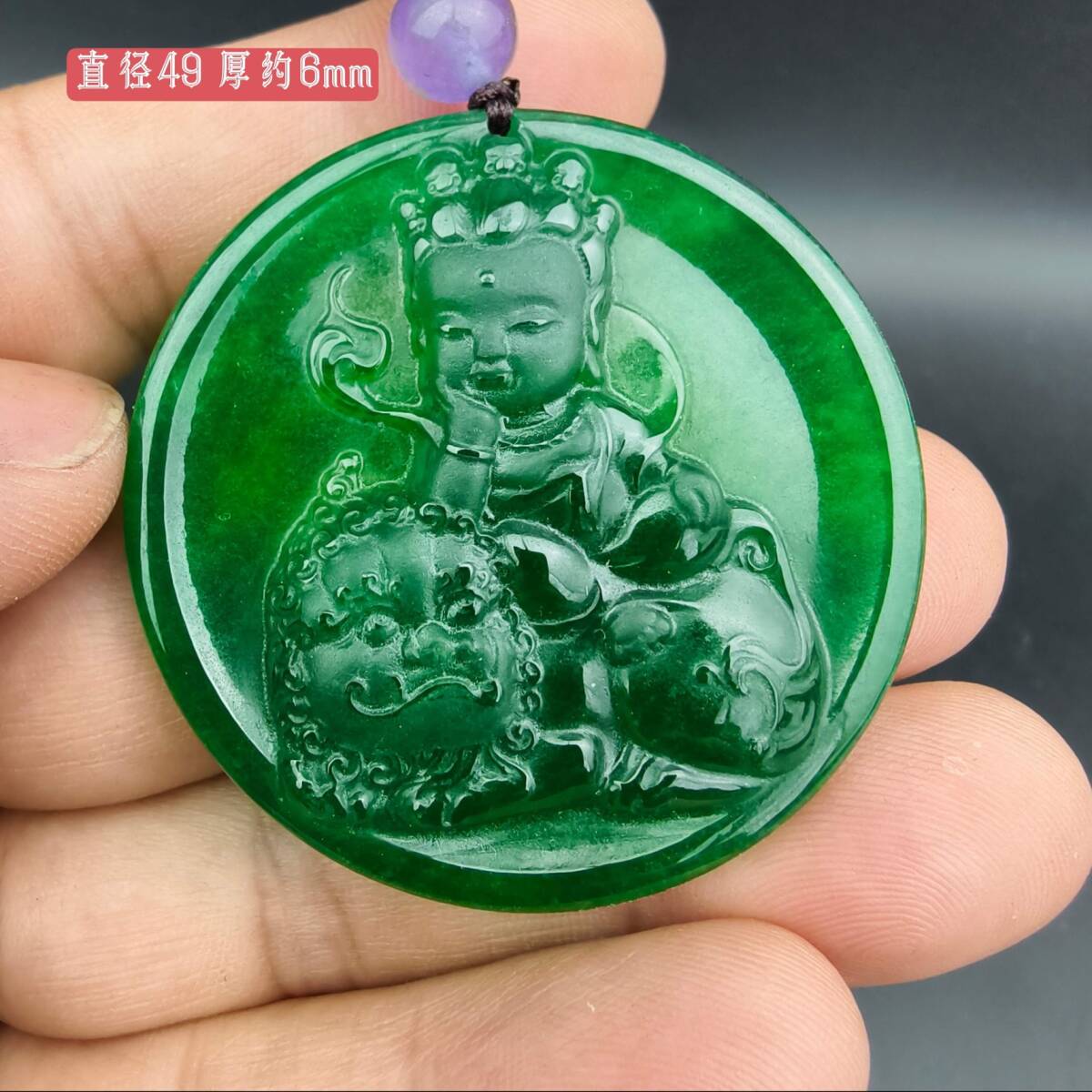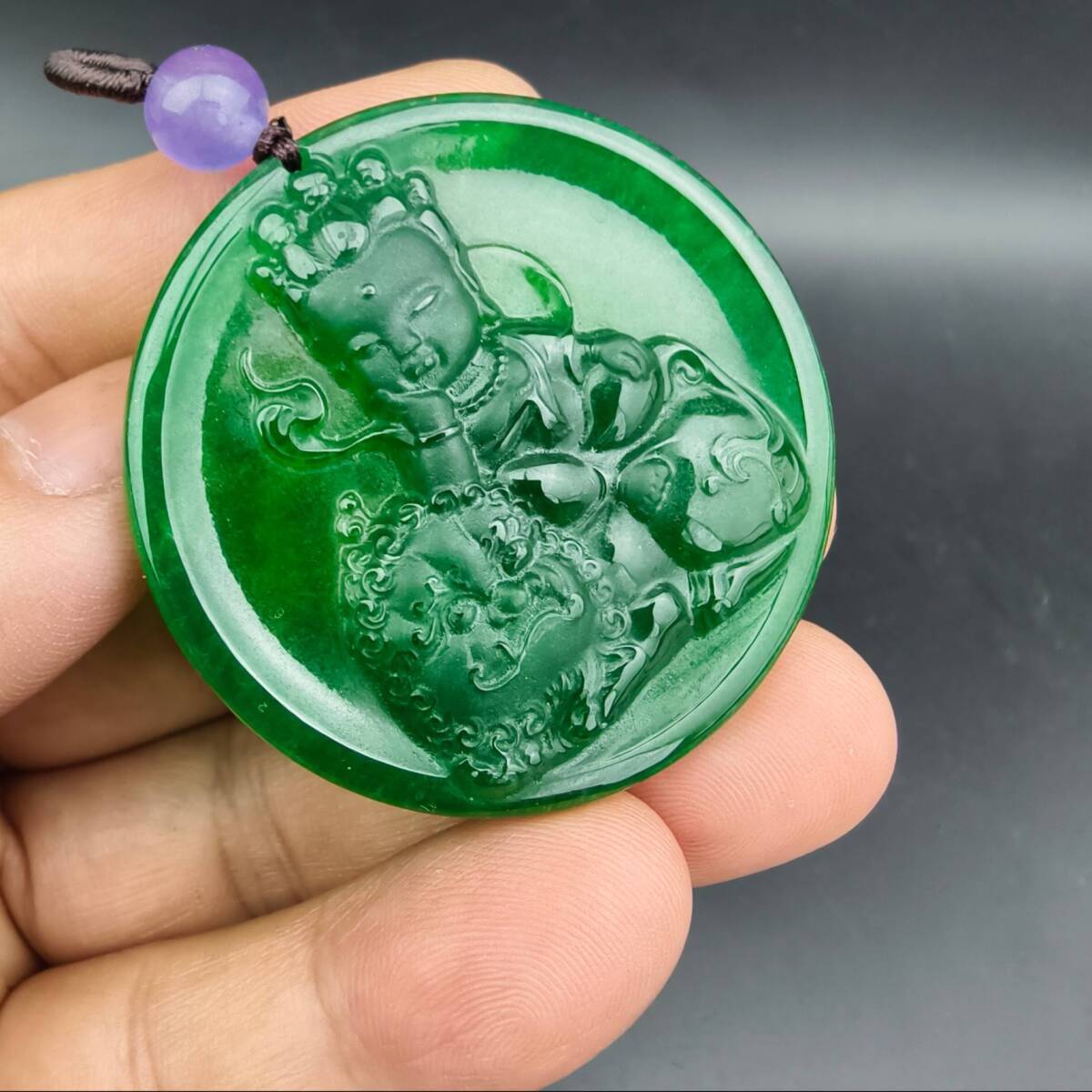 【超珍館蔵】翡翠製 細密彫 童子觀音玉牌ペンダント 根付 裝身具 古賞物 古董品 古美術品 時代物 旧家蔵出 稀少珍蔵品