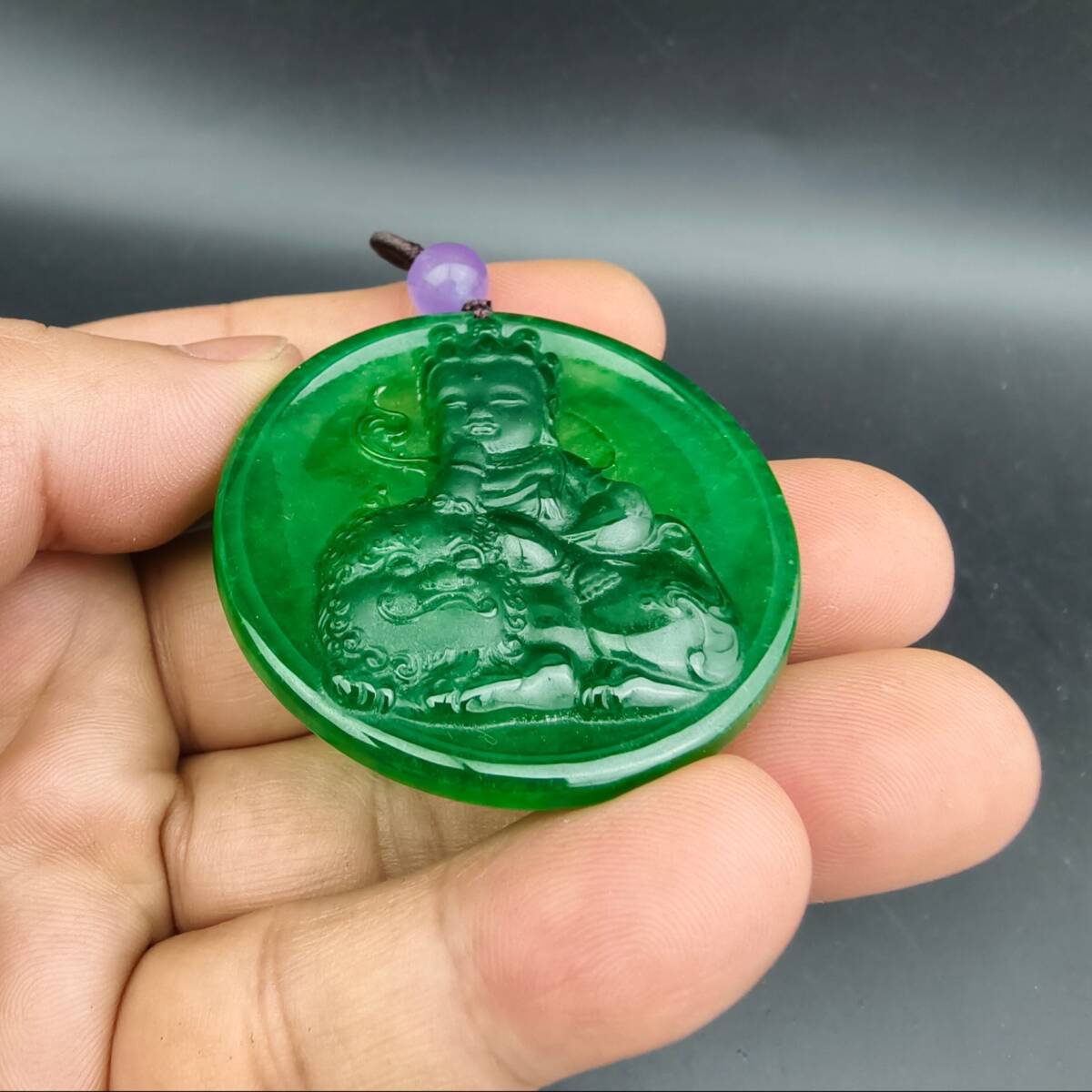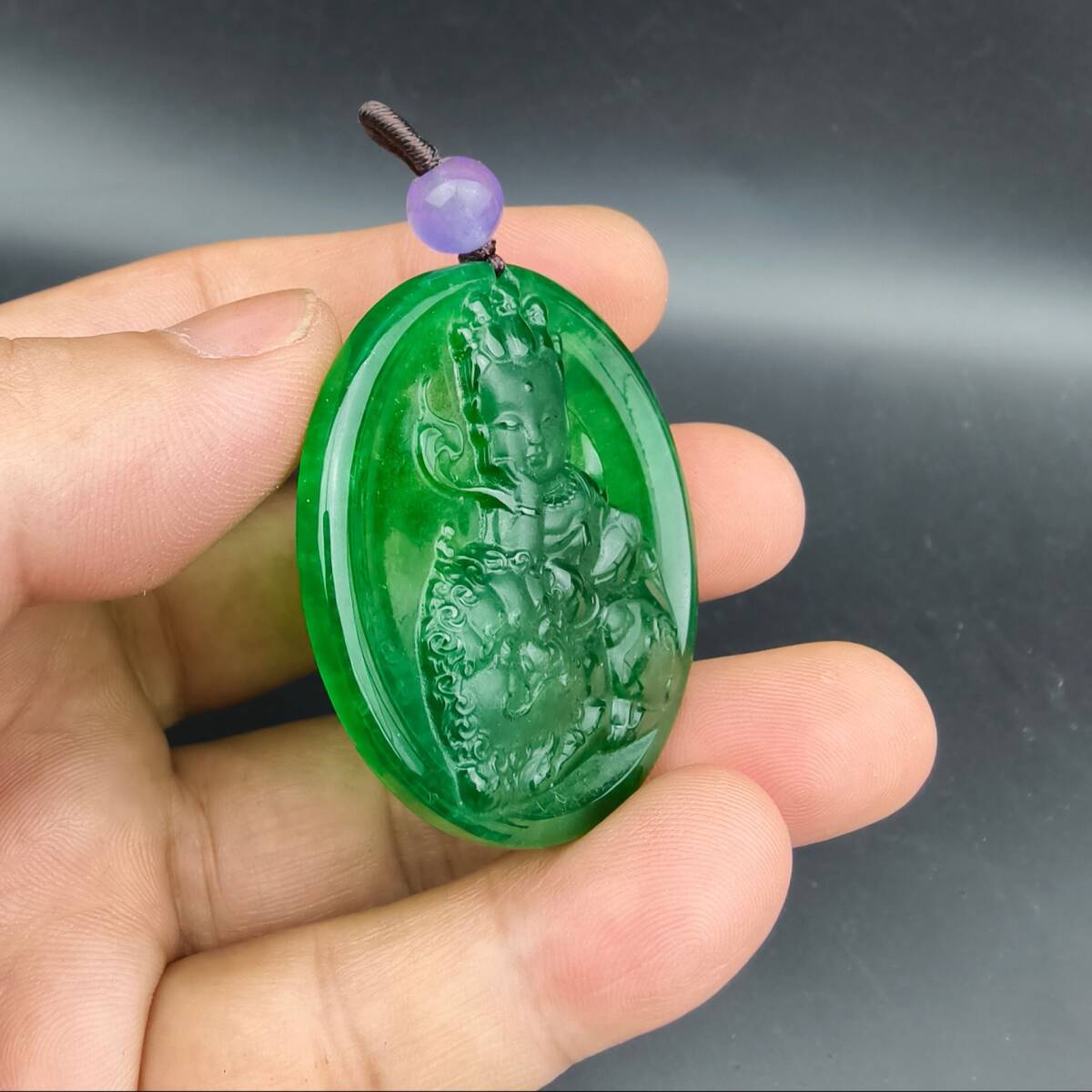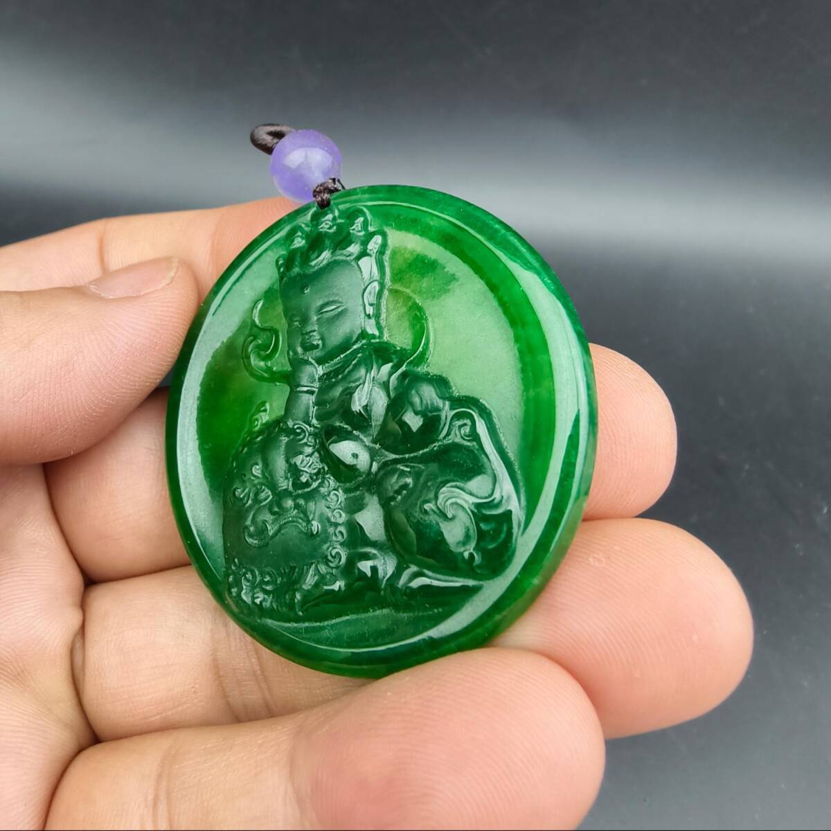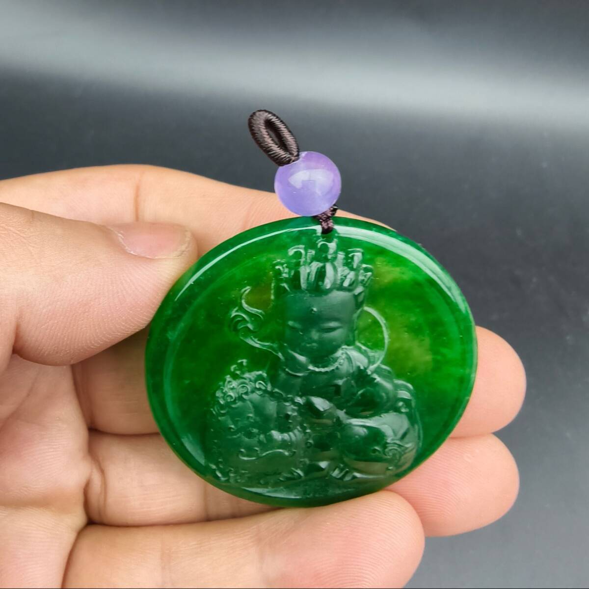 【超珍館蔵】翡翠製 細密彫 童子觀音玉牌ペンダント 根付 裝身具 古賞物 古董品 古美術品 時代物 旧家蔵出 稀少珍蔵品