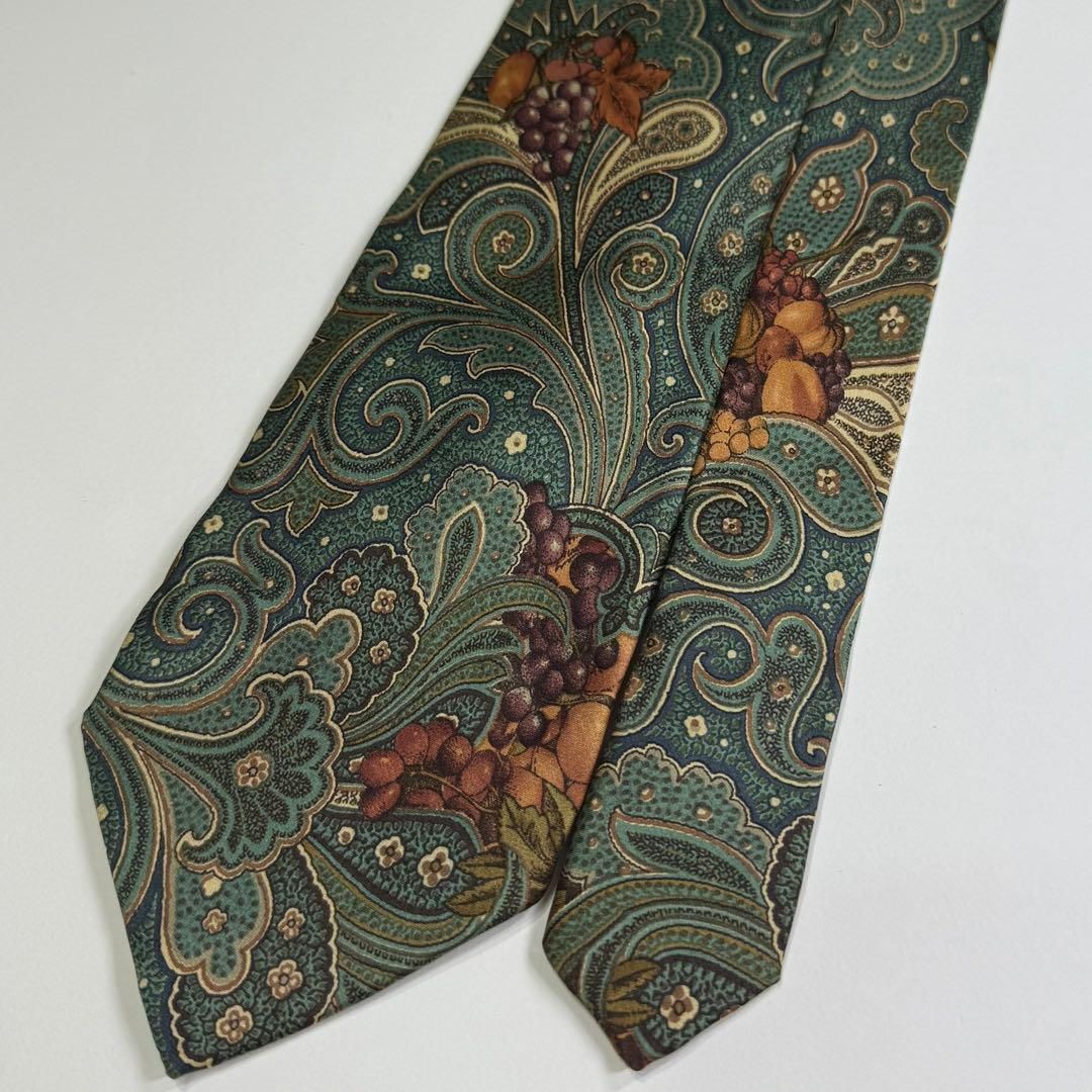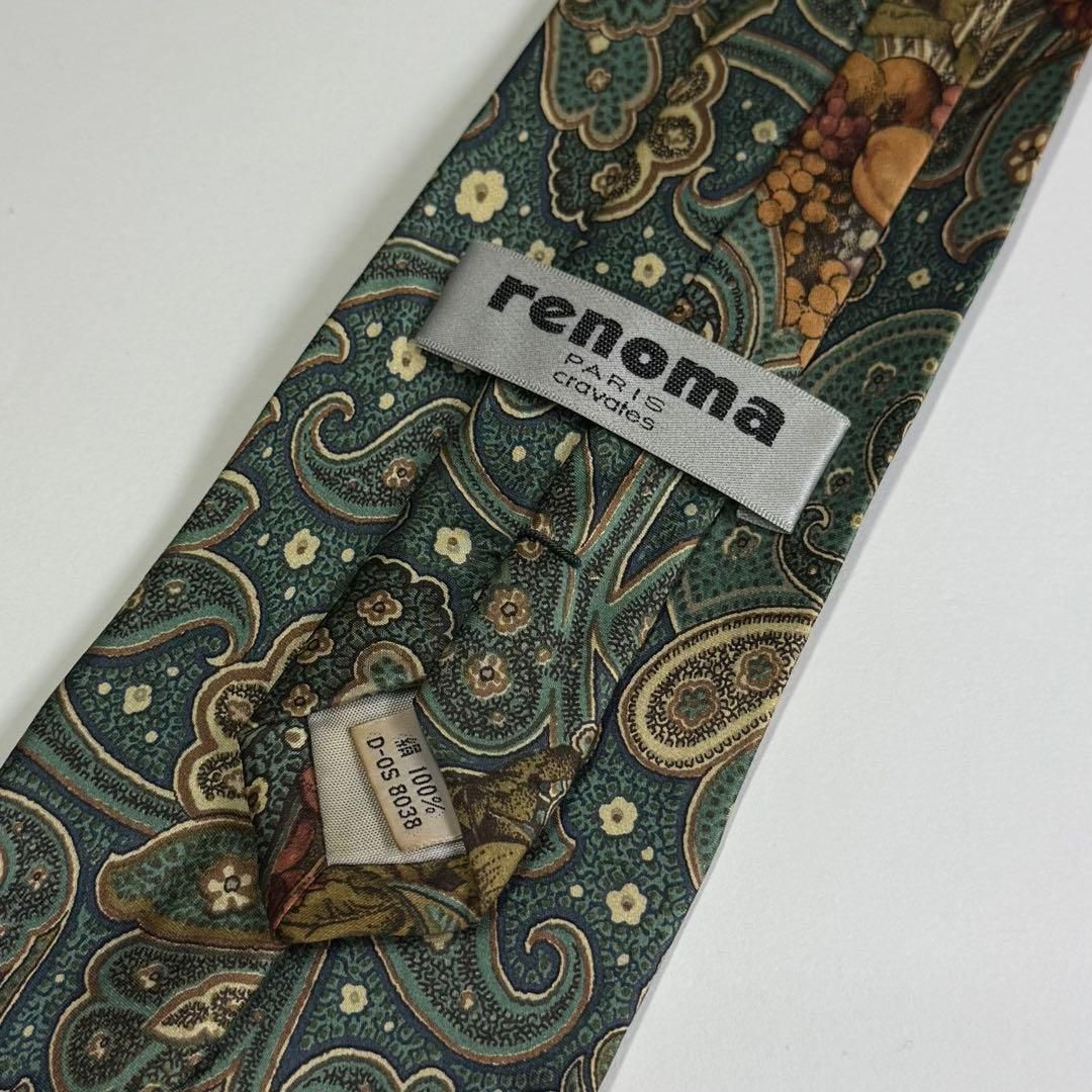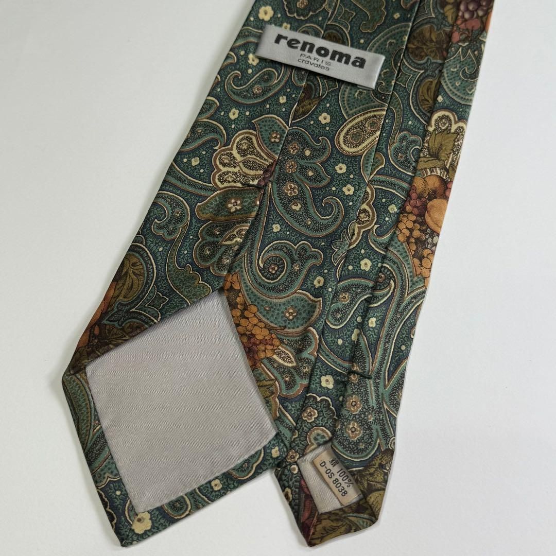 【美品・希少】renoma レノマ 紳士 ネクタイ シルク 100% 絹 果物柄 フォーマル フォーマル 結婚式 ビジネス 仕事 グリーン系 S2822G589