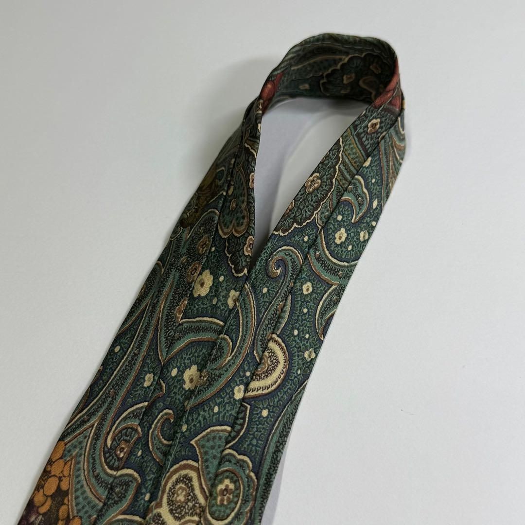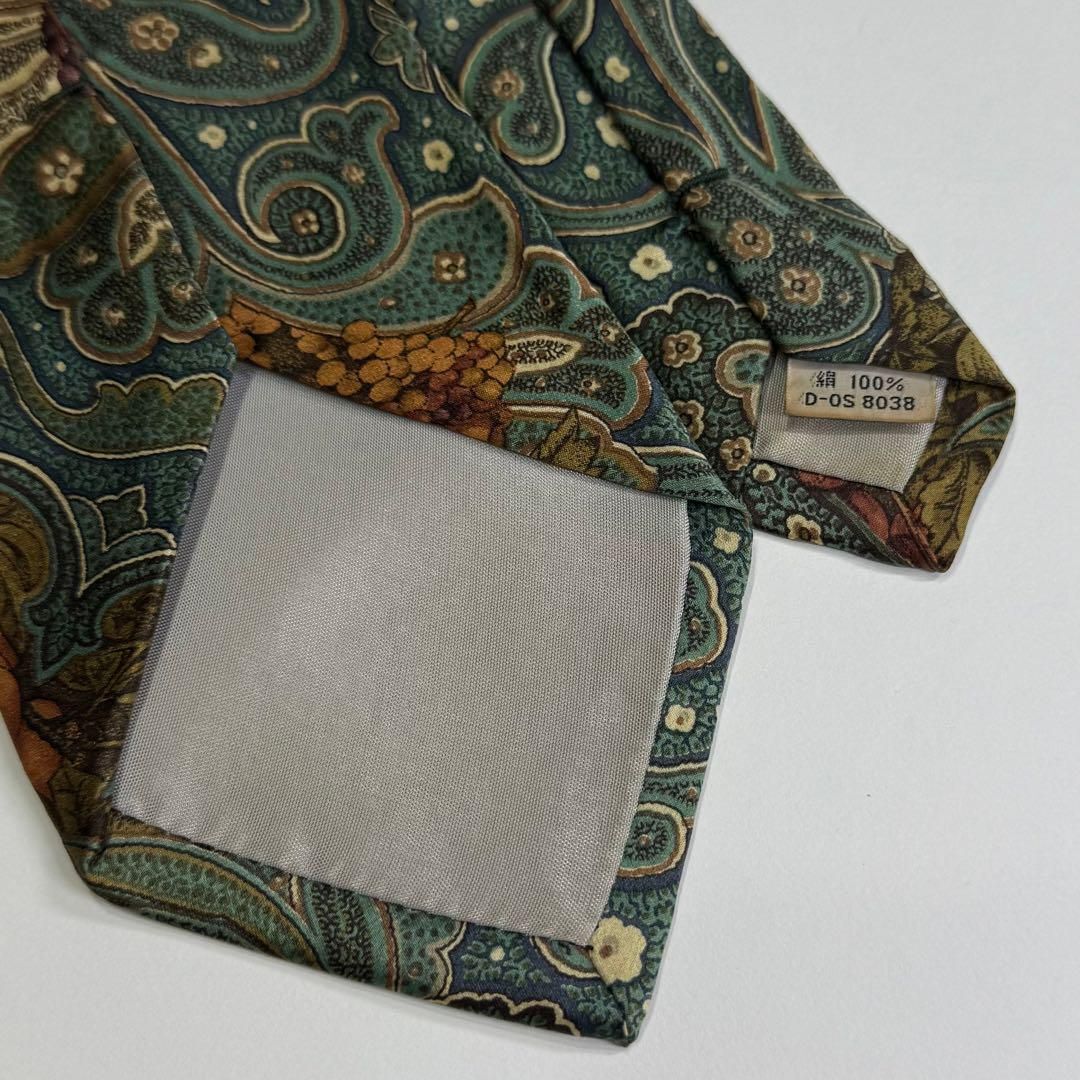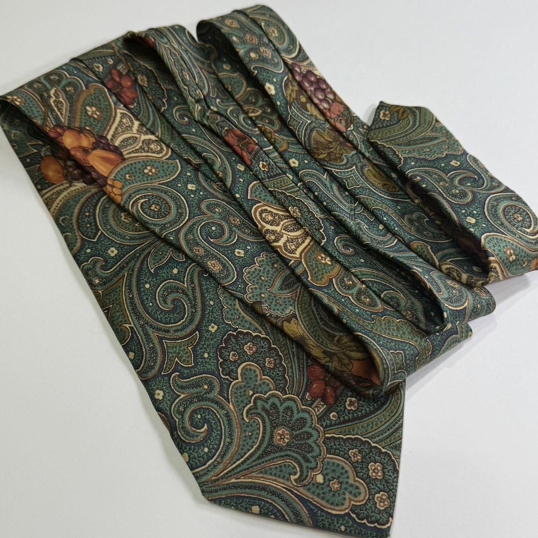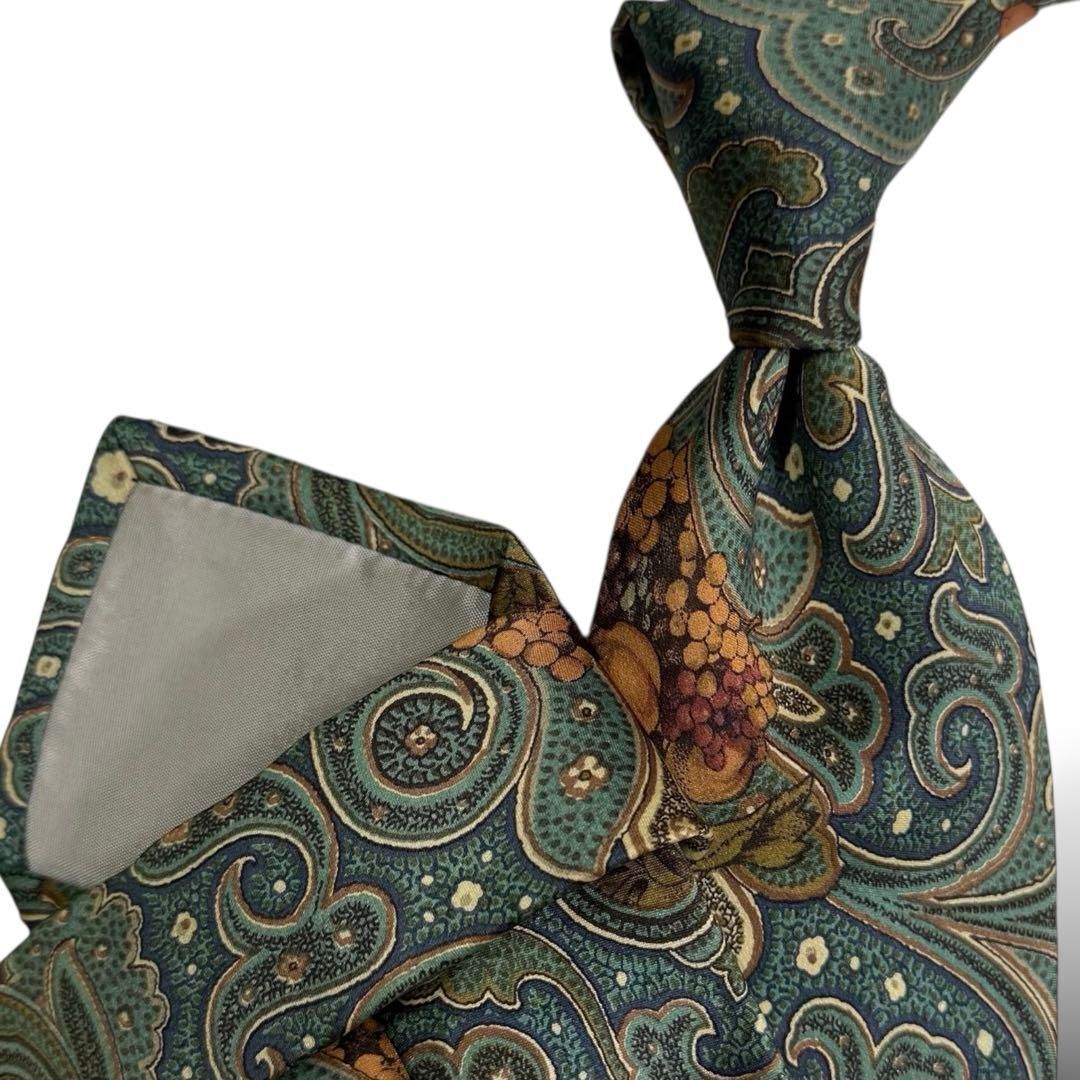 【美品・希少】renoma レノマ 紳士 ネクタイ シルク 100% 絹 果物柄 フォーマル フォーマル 結婚式 ビジネス 仕事 グリーン系 S2822G589