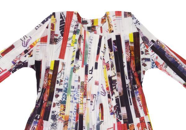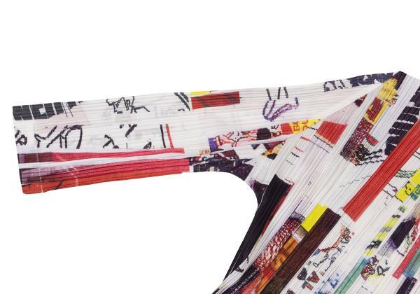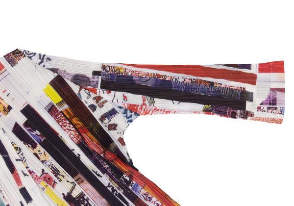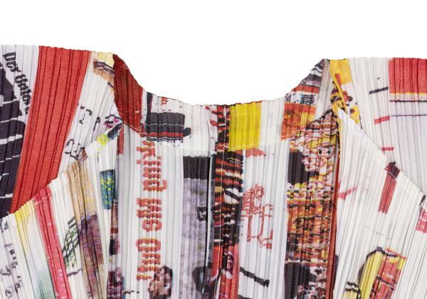 | プリーツプリーズPLEATS PLEASE Terry Johnson 消しプリーツ切替ボタンレスロングカーディガン 白赤他4 |