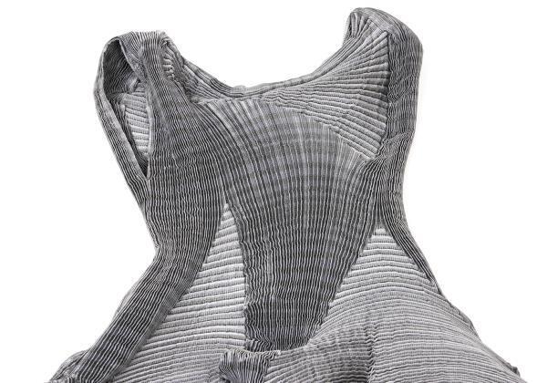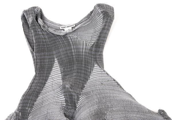 イッセイミヤケISSEY MIYAKE 3Dスチームストレッチプリーツノースリーブフレアワンピース グレー2 |