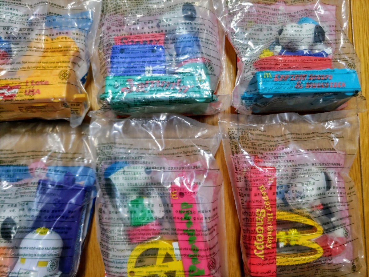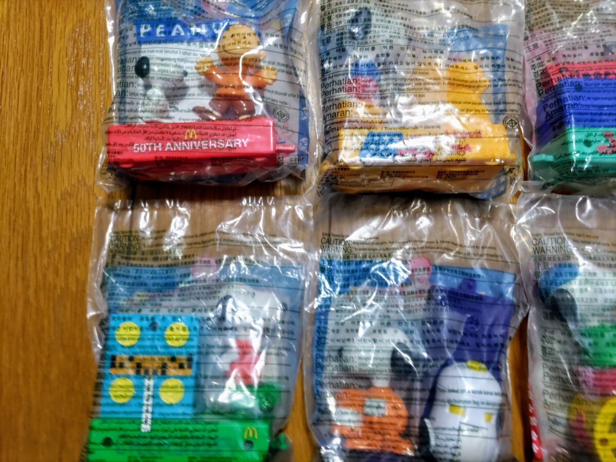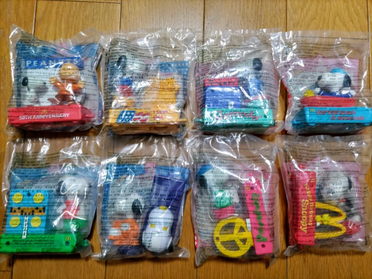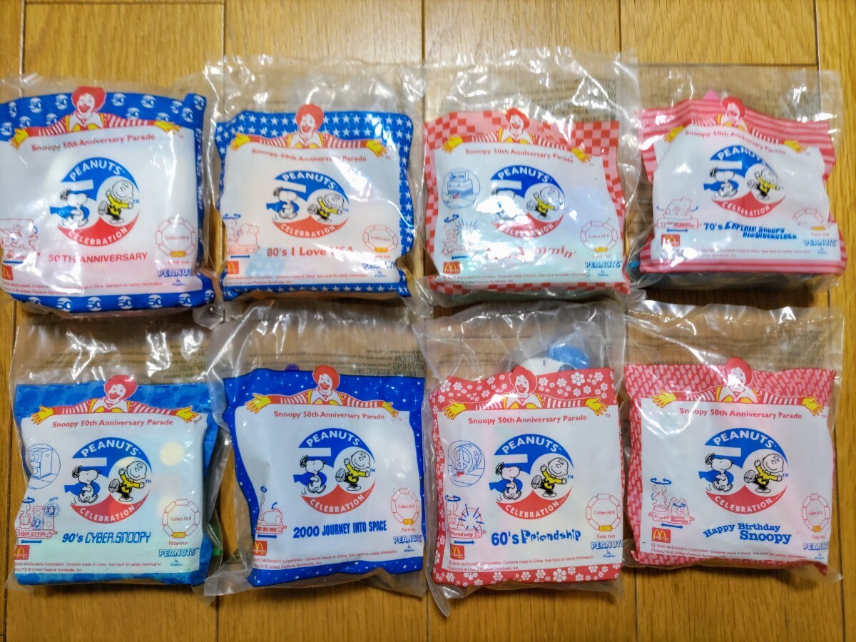 マクドナルドのハッピーセットのおもちゃ、マックトイのレア物(スヌーピー50周年アニバーサリーパレード)8個、未開封コンプセットです。