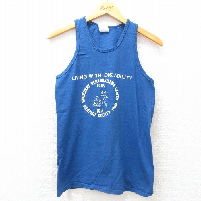 【商品名】 S★古着 ビンテージ タンクトップ メンズ 80年代 80s 10K YMCA コットン クルーネック 紺