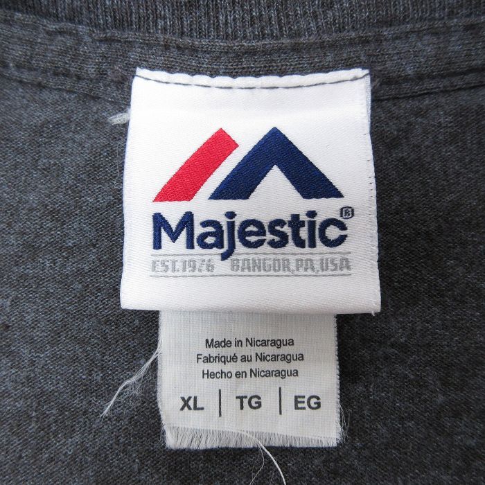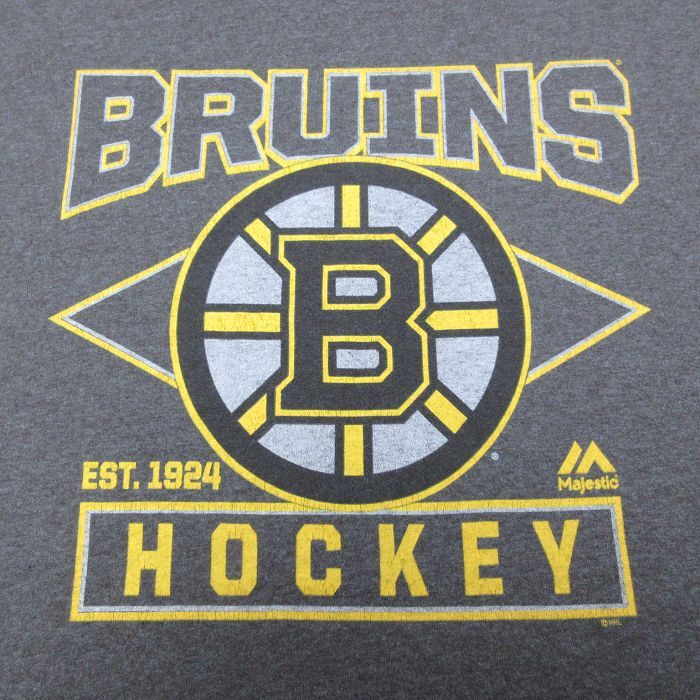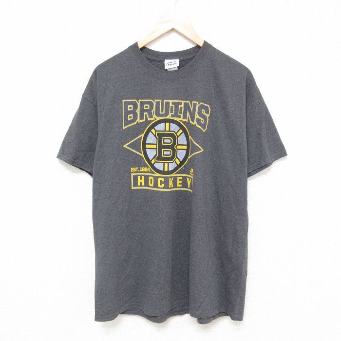 【商品名】 XL★古着 マジェスティック 半袖 Tシャツ メンズ NHL ボストンブルイーンズ クルーネック 濃グレー 霜降り アイスホッケー