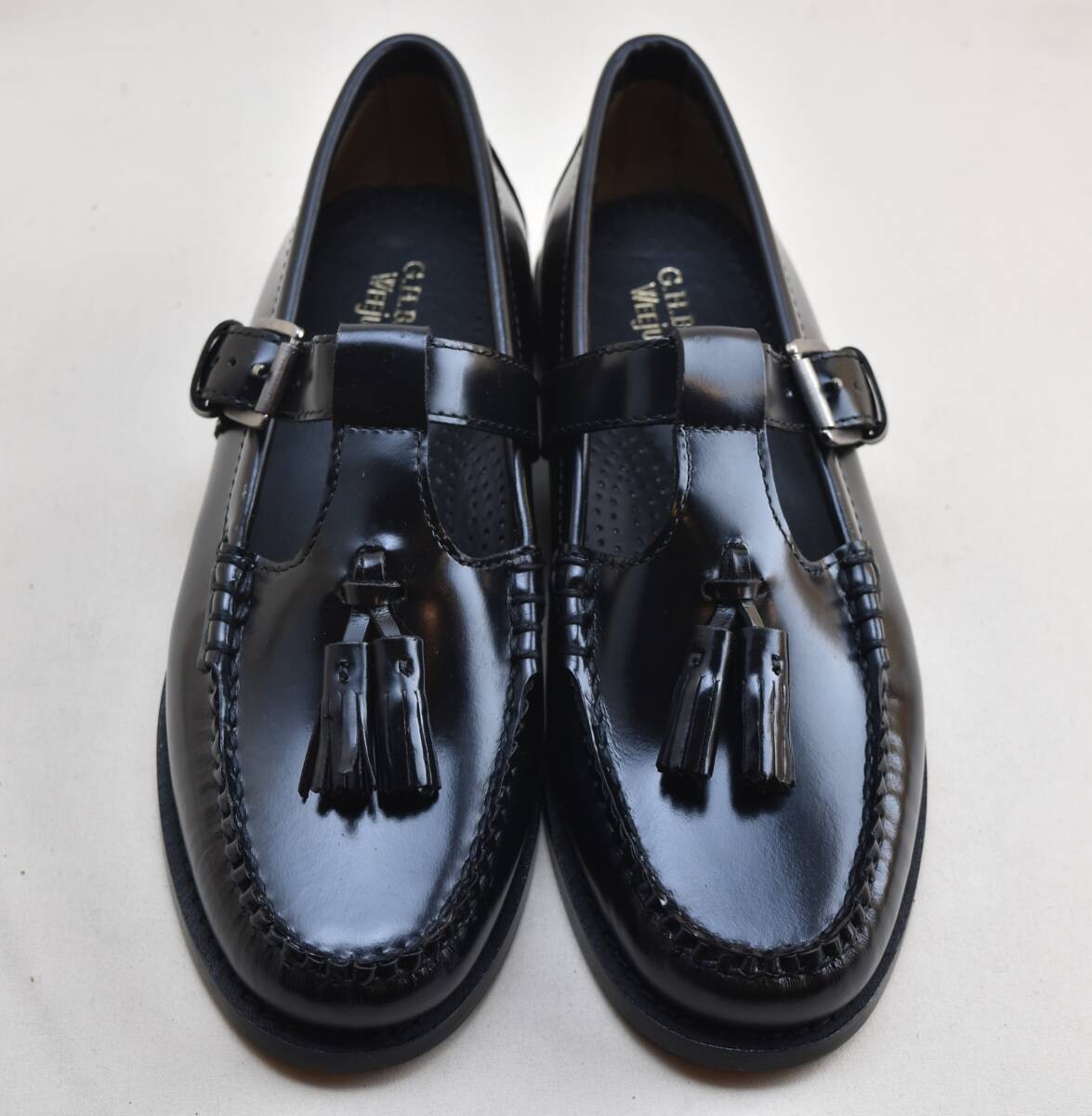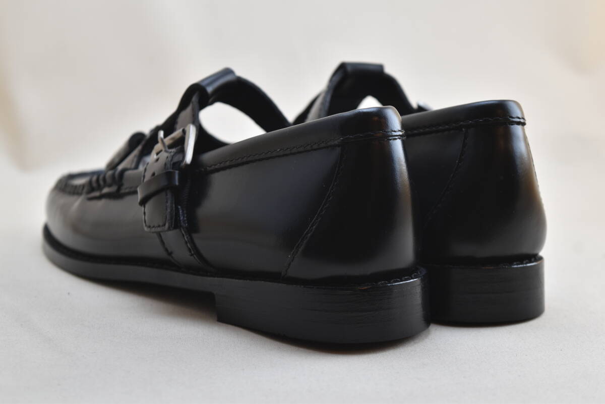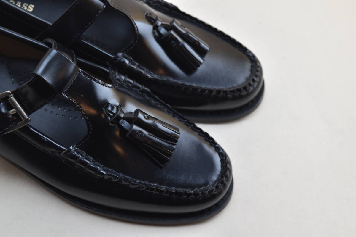 ストラップデザインのメリージェーンスタイルにタッセルをあしらったモードテイストでありながら
