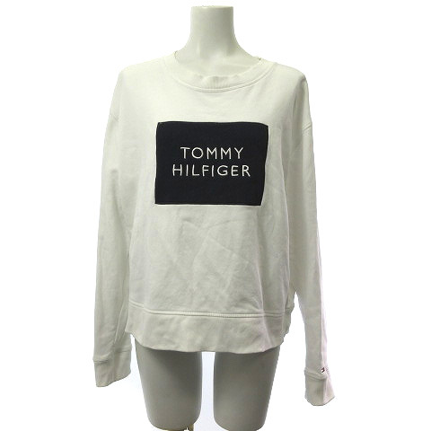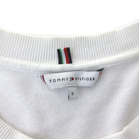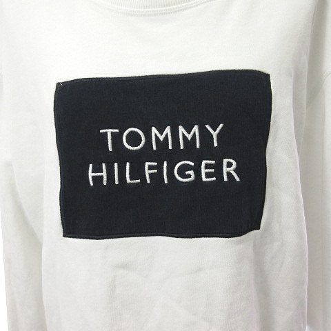 トミーヒルフィガー TOMMY HILFIGER スウェット トレーナー プルオーバー 長袖 エンブロイダリー 白 ホワイト S レディース