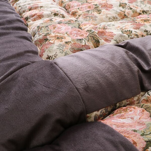 ゴブラン調のデザインで高級感ただようこたつ布団。 表生地はゴブラン調の織り+ベロア調の装飾を施しており、重厚感のある商品です。 裏生地にはふんわり起毛素材を使用しているため、あたたかくなめらかな肌触り。 ふっくらとしたボリューム感は、東レのマッシュロン綿を国内で綿入加工をしている商品だからできる仕上がり。 1枚1枚丁寧に仕上げた安心の品質です。 サイズ展開も豊富の4サイズで大判サイズまで対応しています。 カラーはあたたかみのあるローズ色とシックなベージュ色の2色で、使いやすい色合いになっています。 ※こたつ台、敷布団は別売りです。 ※ふとんをやぐらの中に押し込んだり、座イスやイス全体をこたつの中に入れたまま使用しないでください。 ふとんがヒーターに当たらないようにご使用ください。 ※掲載写真は表記サイズと異なる場合がございます。 ※画面上のカラーはご使用ブラウザやモニターの設定により、実物とは若干異なる場合がございます。 あらかじめご了承の上、ご注文をお願いいたします。 約205×205cm ■生産地:日本 ■素材・成分:表地=(柄部) 【ジャカード生地】ポリエステル75%、綿20%、レーヨン・アクリル・ナイロン5%(無地部)ポリエステル100% 裏地=ポリエステル100% 【フランネル】 中綿=ポリエステル100%(東レマッシュロンわた) 着日指定はお受けすることができません 発送後お問い合わせ番号をご連絡しますので 配送業者と調整をお願いいたします ************ 大型家具の場合 配送先地域によっては発送後8~10日ほどかかる場合があります ************ |