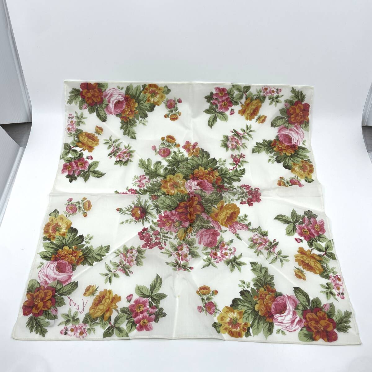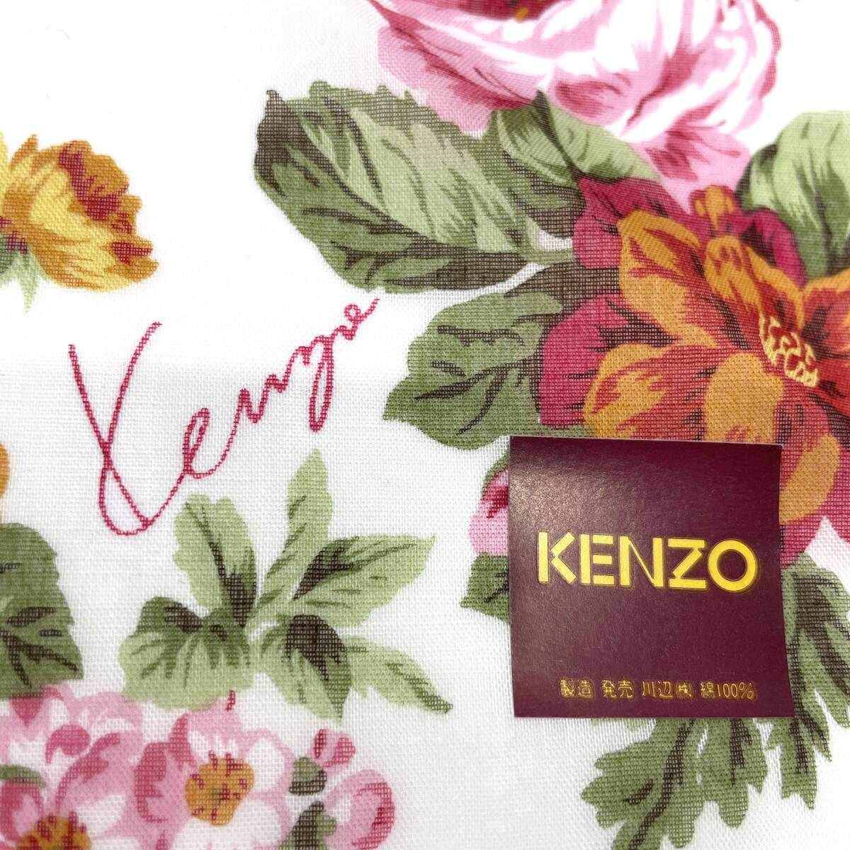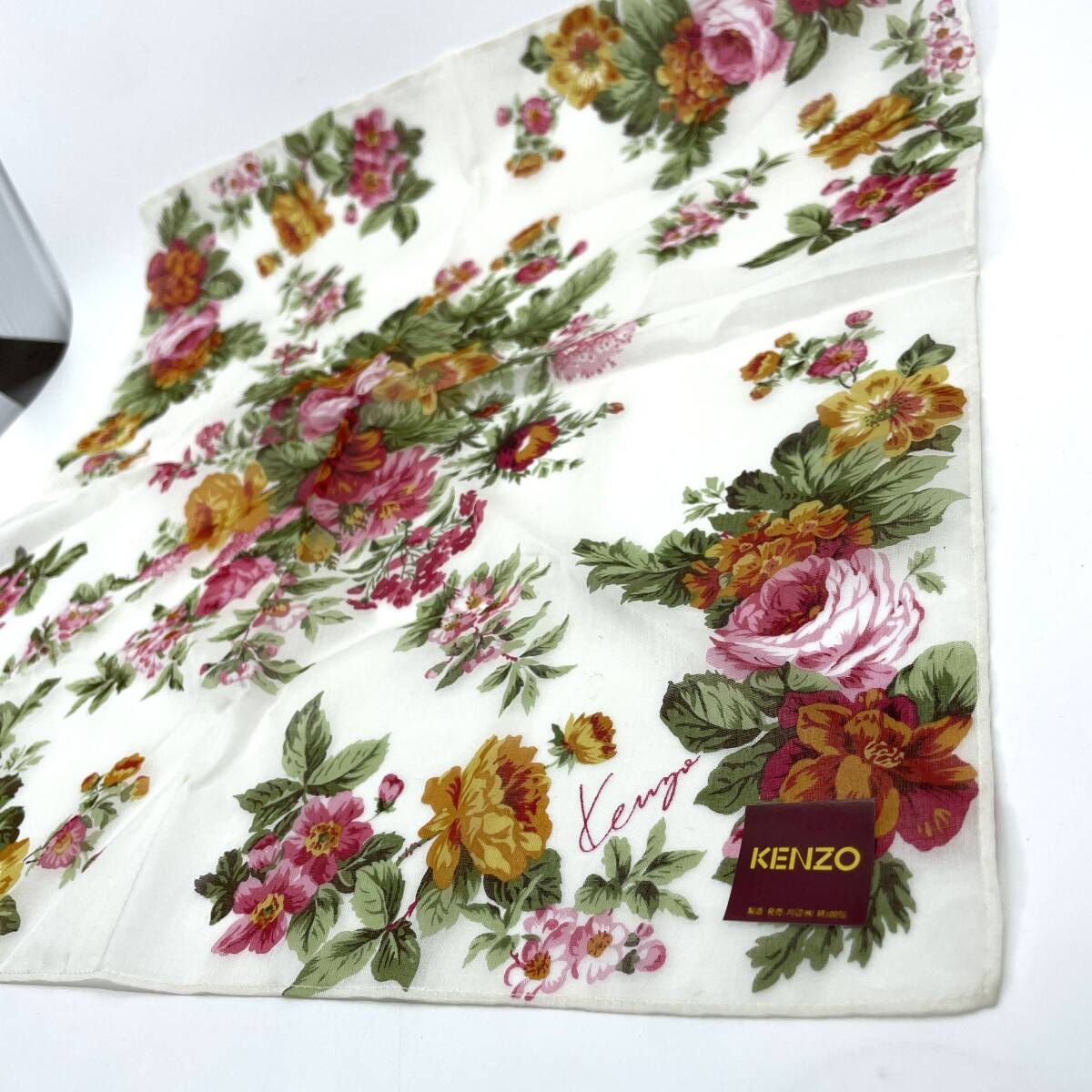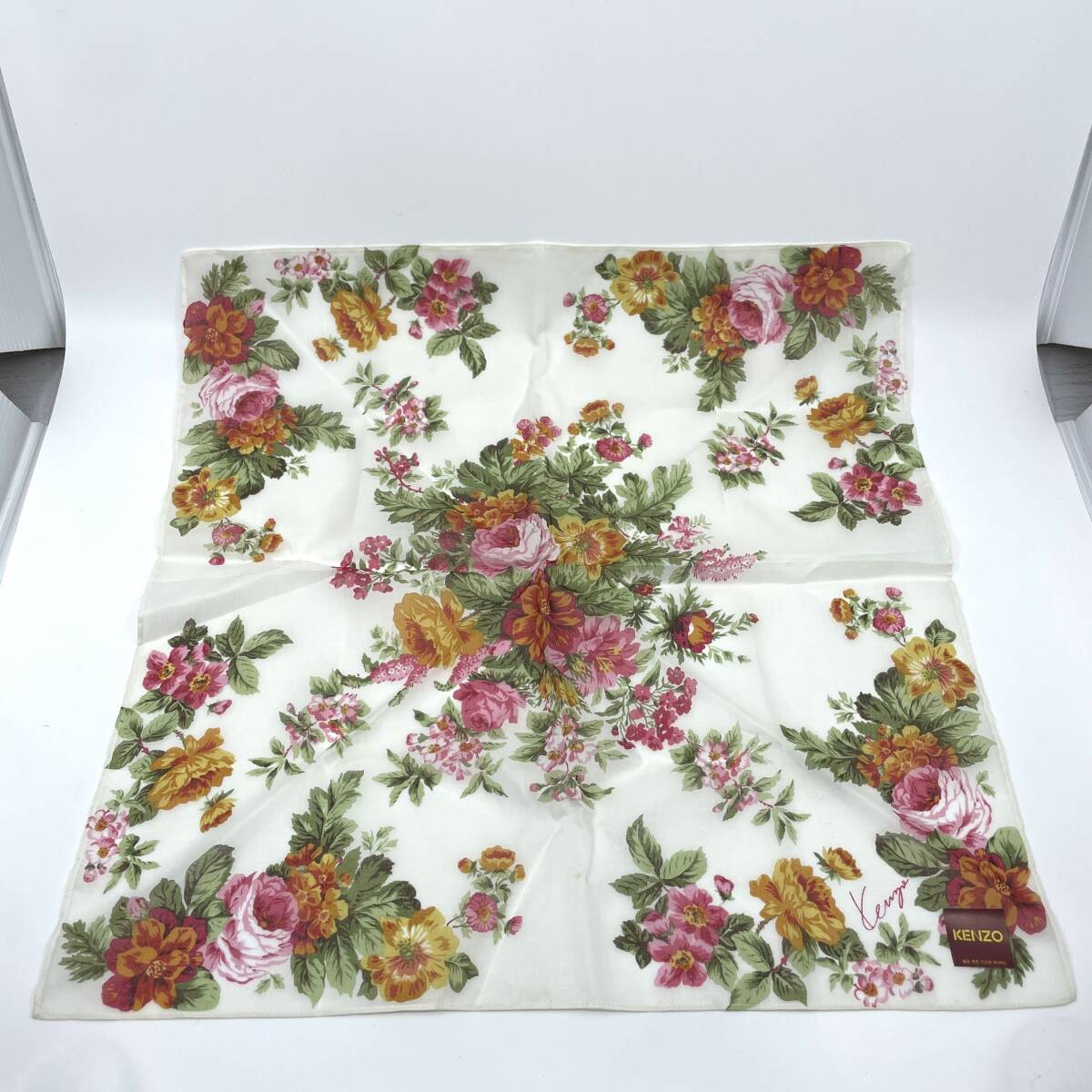 【シール付き未使用品だが保管ダメージ有り】KENZO ケンゾー ハンカチ バンダナ オレンジ×ピンク×グリーン 花柄 フラワー 華やか