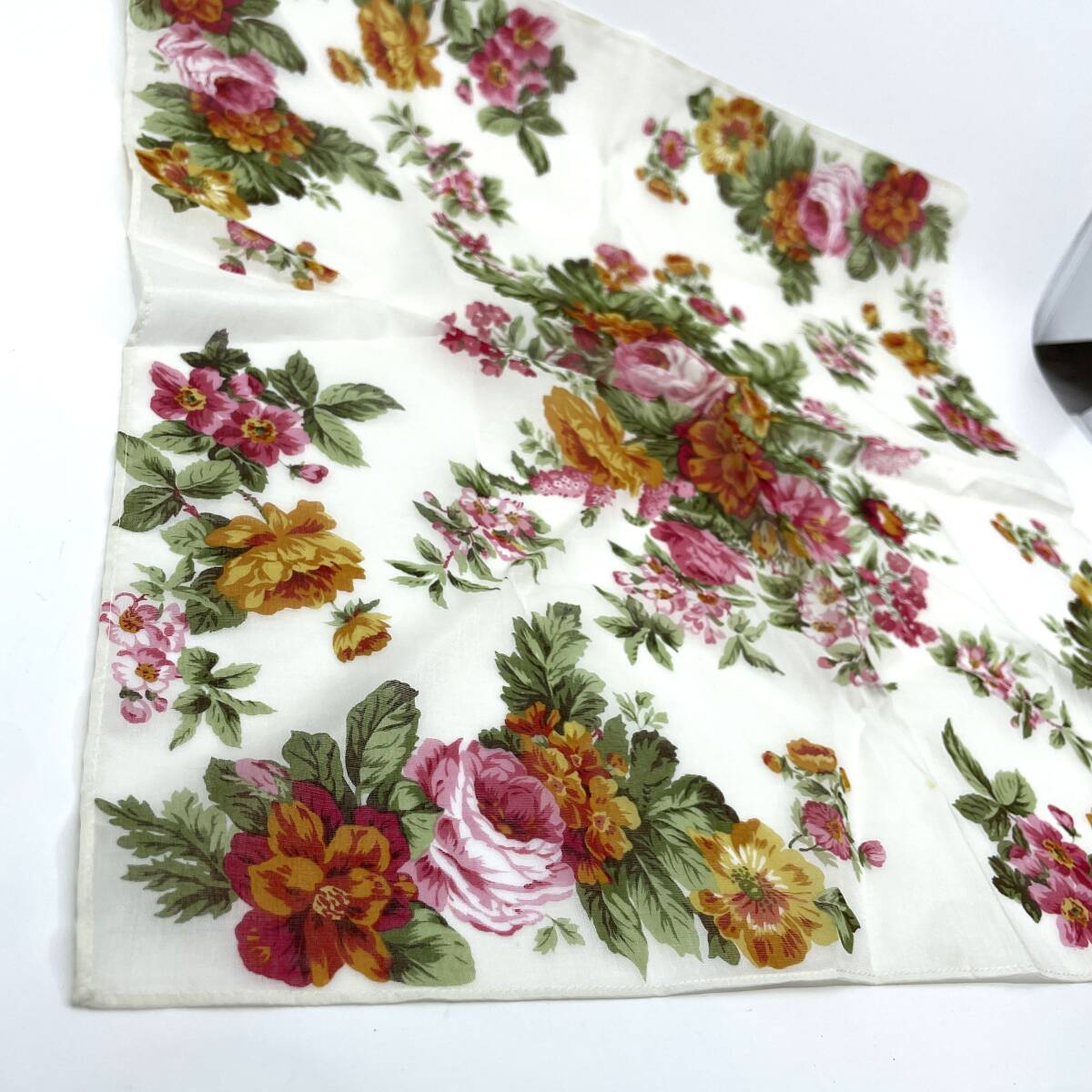 ハンカチ バンダナ オレンジ×ピンク×グリーン 花柄 フラワー 華やか ラグジュアリー エレガント