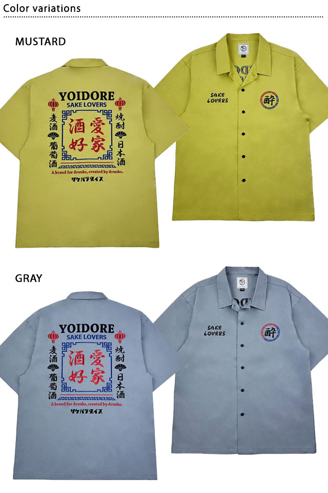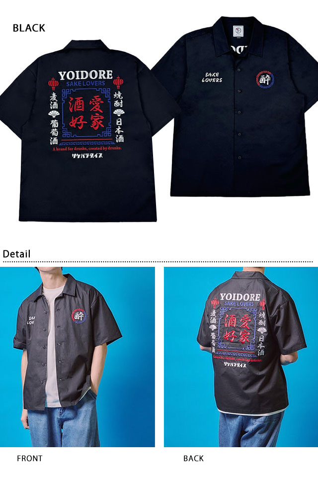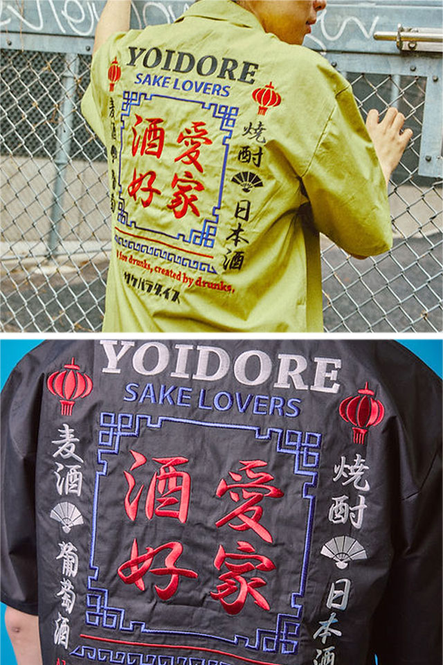 すべての酔いどれに届ける、酔いどれのためのブランド「YOIDORE」より「酒愛好家半袖シャツ(825310)」が入荷してまいりました。 酔いどれ(酔っ払い)に届ける、酔いどれ(酔っ払い)のためのブランド。 お酒をテーマにした様々なデザインを落とし込んで展開。 気鋭のアーティストや酒造メーカー、人気ショップとのコラボレーションや、型にはまらない独特の世界感を表現した新感覚のアパレルブランドです。 老若男女お酒好きな方、お酒のお供にいかがでしょうか。 YOIDOREの定番デザイン「酒愛好家」モチーフを半袖シャツに落とし込んだYOIDOER愛に溢れたアイテム! 和洋折衷のYOIDOERワードが満載の刺繍デザインが独特な世界観を演出し、暑い夏をCOOLに彩ります。 さらっとしつつも張り感のある綿100%のワークシャツです。 さっと羽織っただけでコーディネートが格上げするS/Sシーズンの必須アイテムです。 ややゆったりめのルーズなシルエットは適度なリラックス感があり、ラフな呑みシーンでのコーディネートに取り入れたいマストなアイテムです。 全ての商品にシーズン毎にデザインが変わる限定ステッカーが付いてきます。 | ||||||||||||||||||||