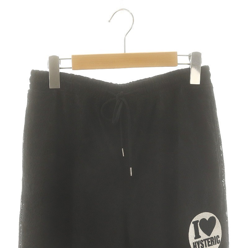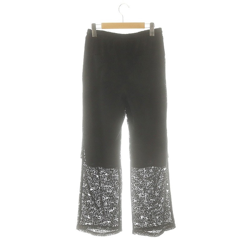 ヒステリックグラマー HYSTERIC GLAMOUR 24SS FLAME LOGO柄ジャカード ニータックワイドパンツ 総レース M 黒 白 /MI ■OS レディース