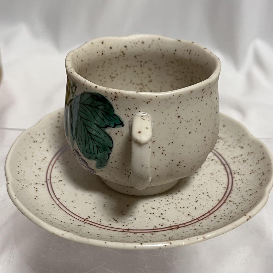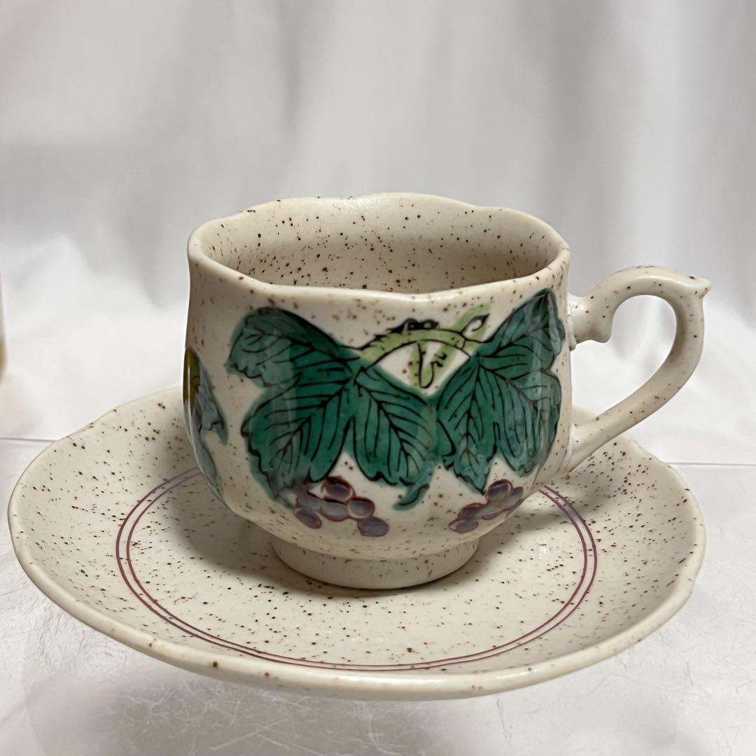 未使用 九谷焼 仙峰窯 カップ&ソーサー 5客 葡萄 ぶどう コーヒーカップ 手書き 小さめ