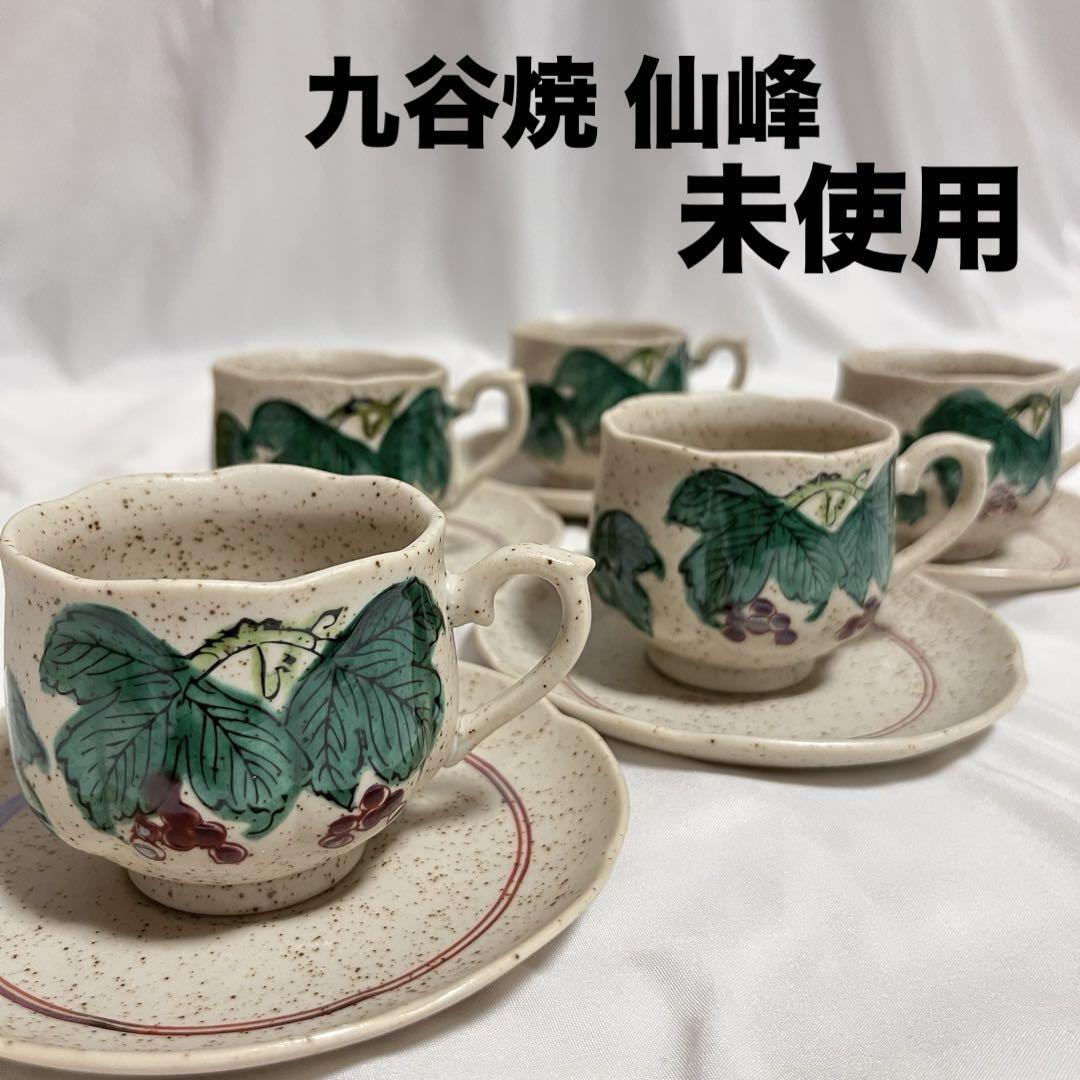 未使用 九谷焼 仙峰窯 カップ&ソーサー 5客 葡萄 ぶどう コーヒーカップ