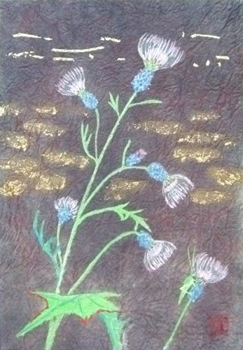 ![]() 中條理恵子「立冬(アザミ)」日本画 SM |