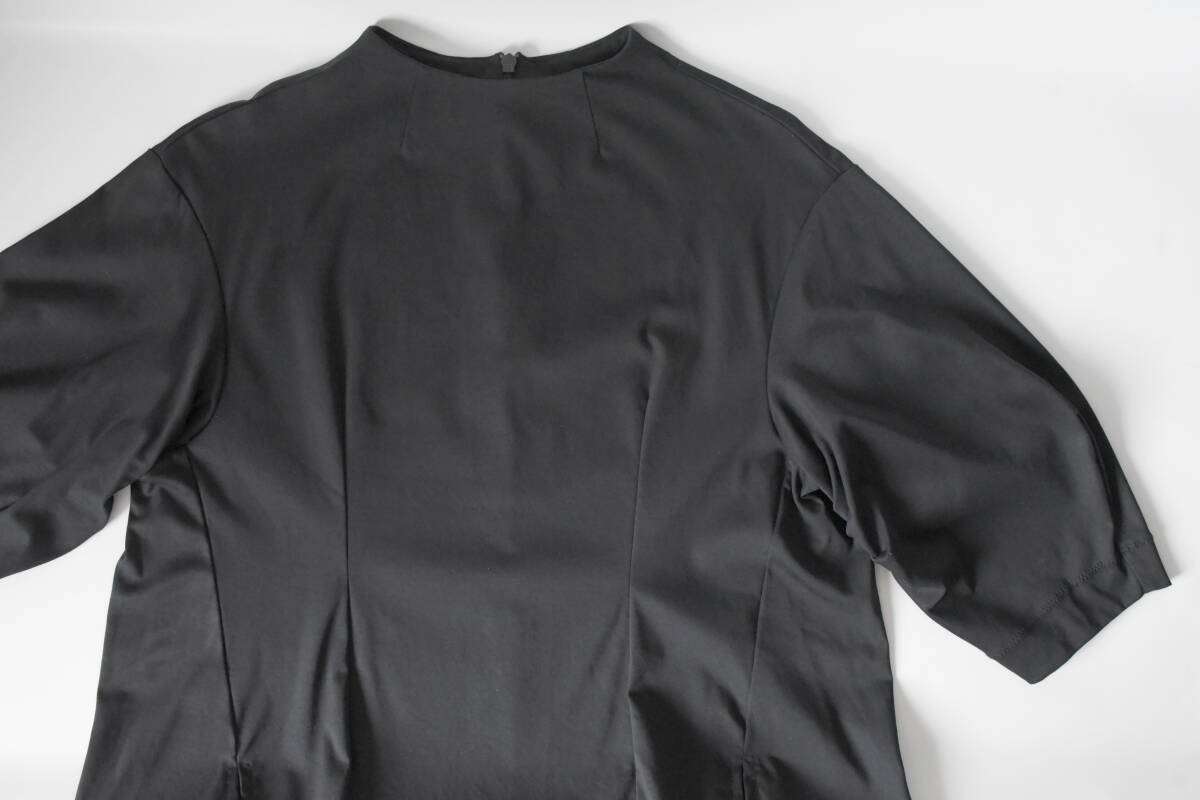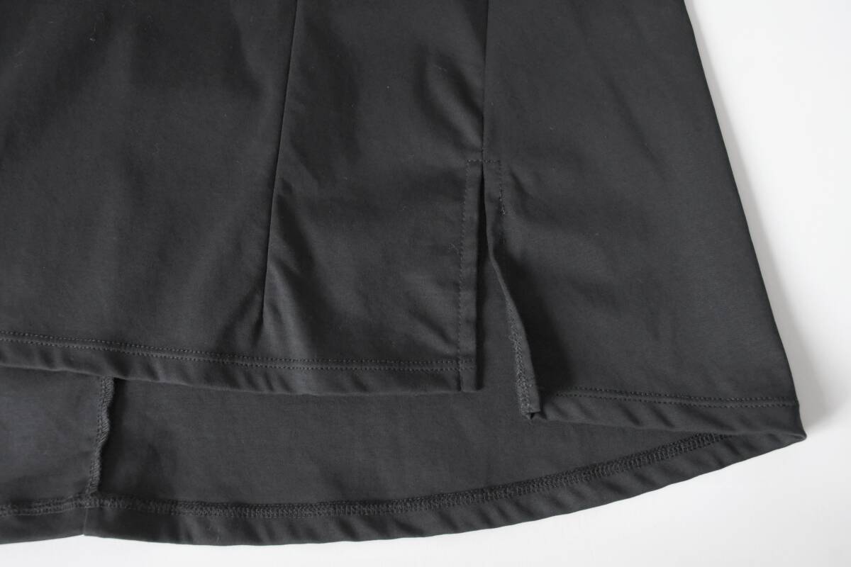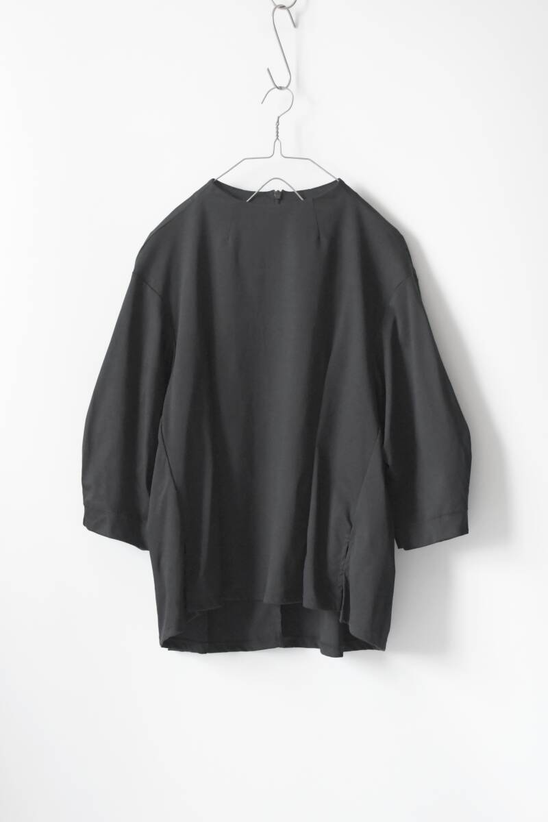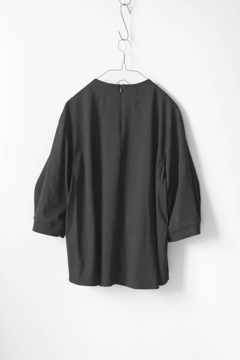 なめらかでハリのある素材感で、タックで立体感を出したミニマルな雰囲気に仕上がっています。