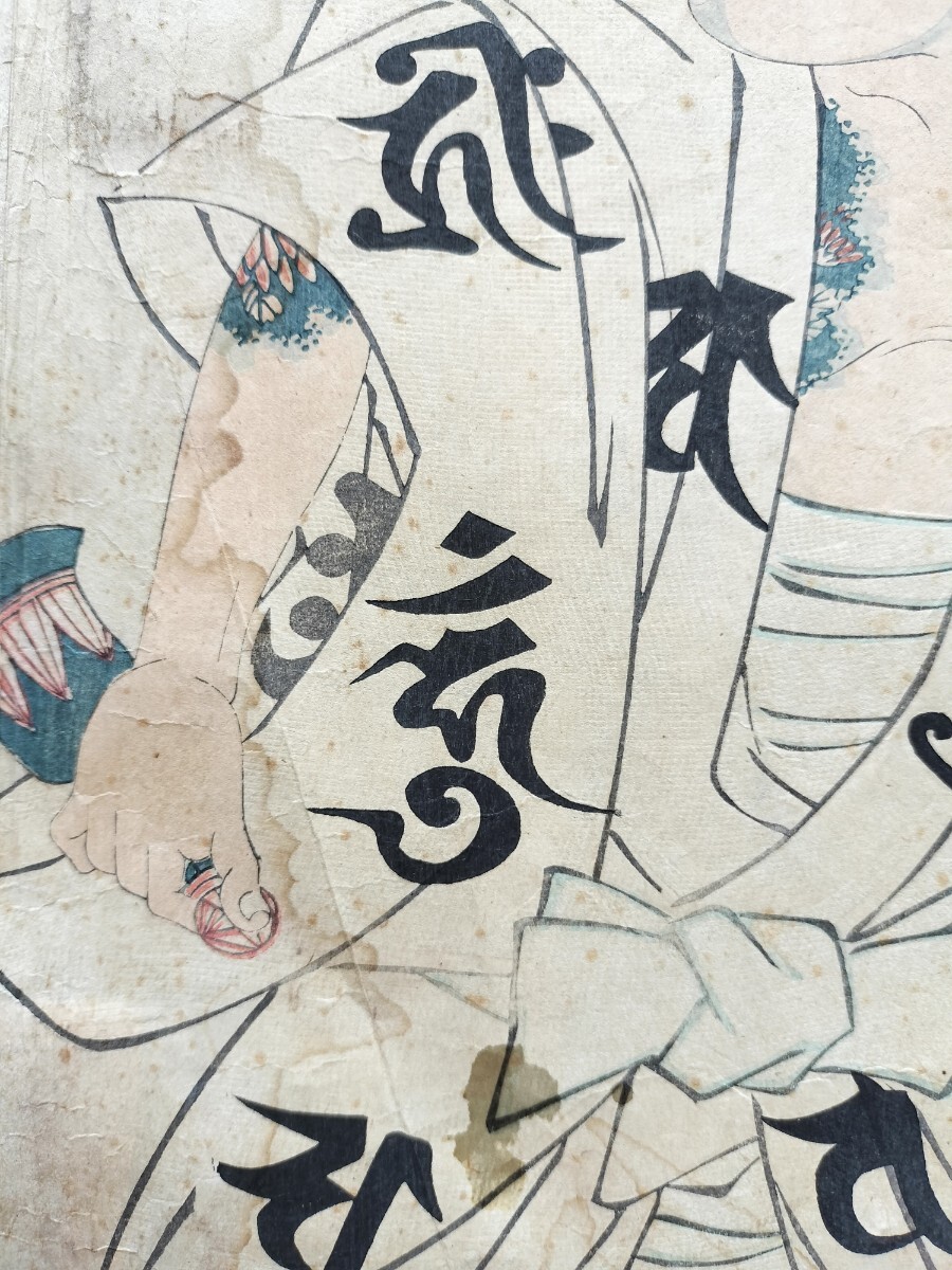 作品のダメージにつきましては、すべての出品物は骨董品、中古品ですので説明しきれない時代物としてのシミ・イタミ・シワ・剥脱・ヤブレ・ヤケ・変色等見られます。目立つダメージは明記しておりますが、画像では見にくい細かなダメージがある場合がございます。骨董品・美術品としての特性としてご理解いただけます場合のみご入札をお願いいたします。