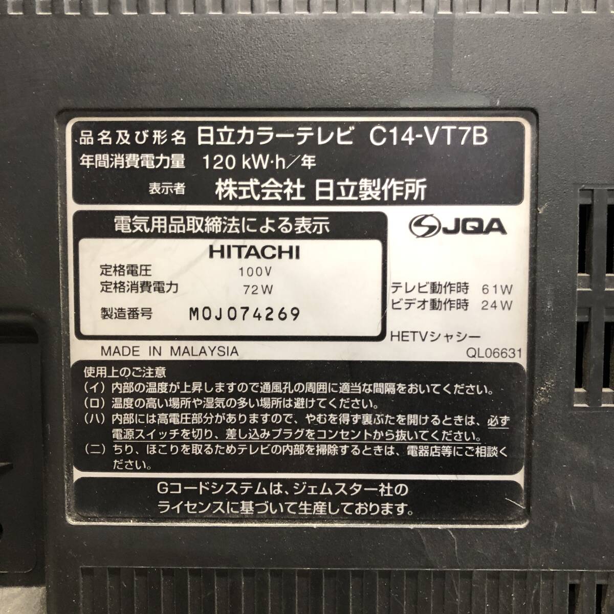 F626 日立 ブラウン管テレビ C14-VT7B カラーテレビ ビデオ内蔵テレビ 14インチ 2000年製 直接引取可 石狩市