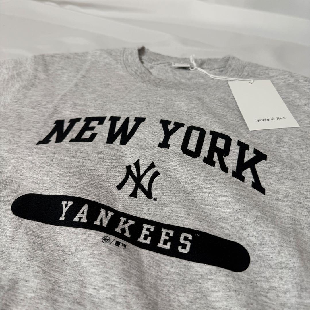 ニューヨーク ヤンキースのスポーティ&リッチのコラボ商品。Tシャツは 100%コットン、防縮加工済みで、やや大きめのサイズ感です。