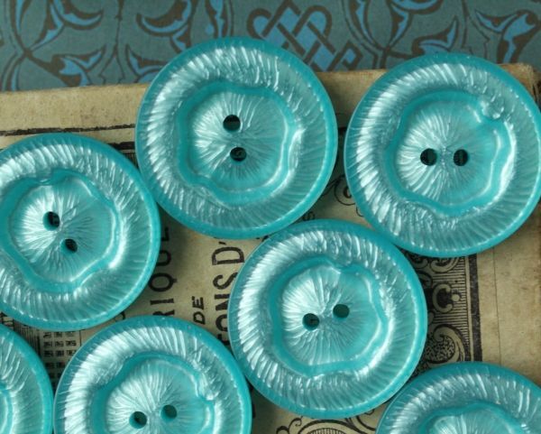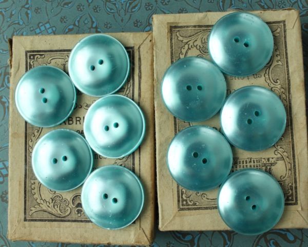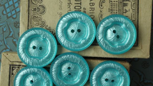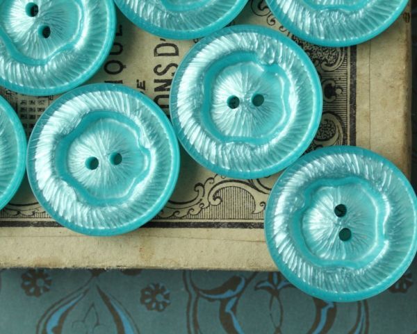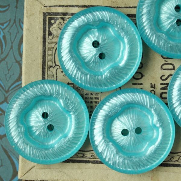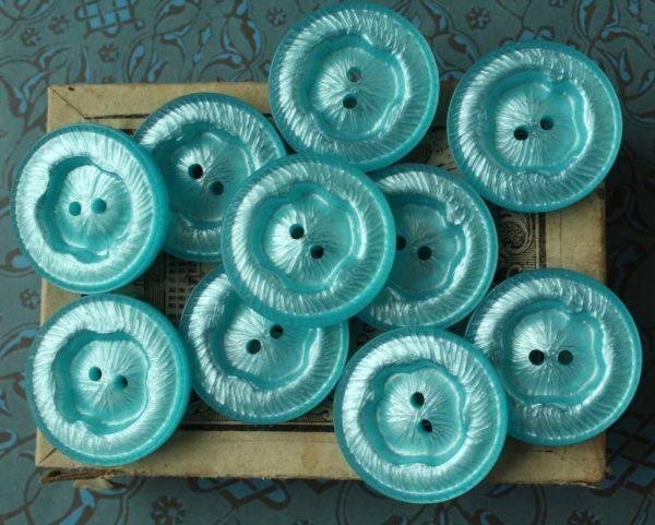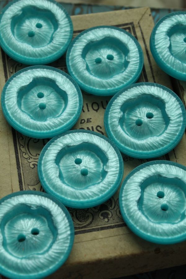 即決 ボタン 10個 φ27mm 厚6mm ライトブルー 水色 2穴 プラスチック 樹脂 フランス輸入