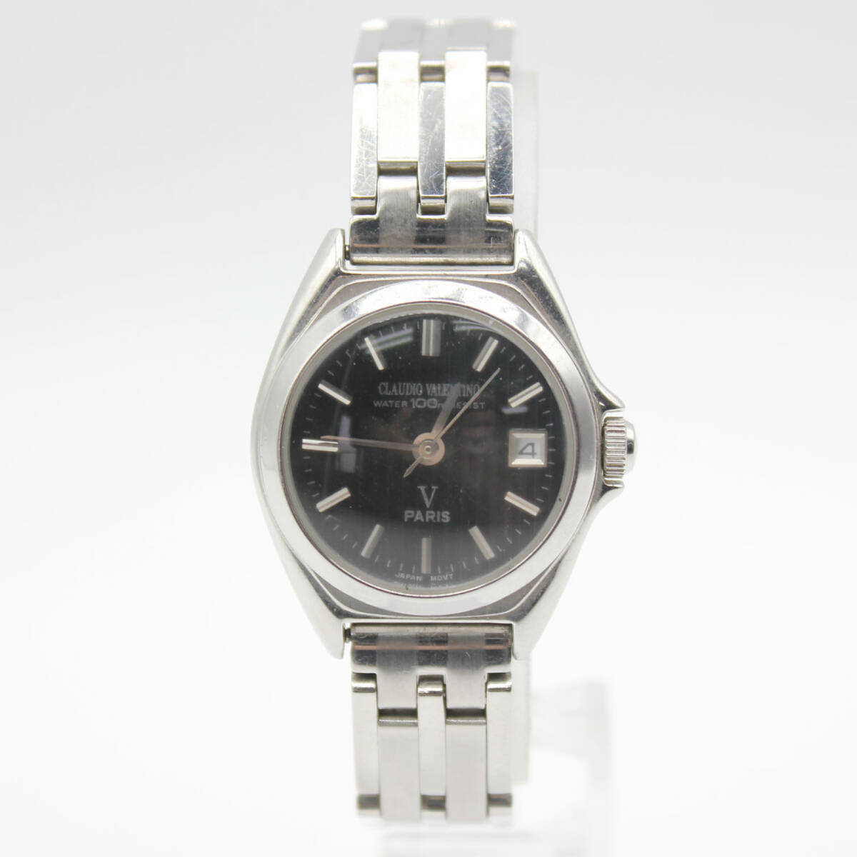 W250625-16 CLAUDIO VALENTINO クラウディオ ヴァレンチノ メンズ腕時計 クォーツ デイト ジャンク 文字盤ブラック ストライプ