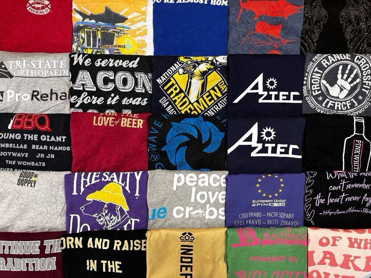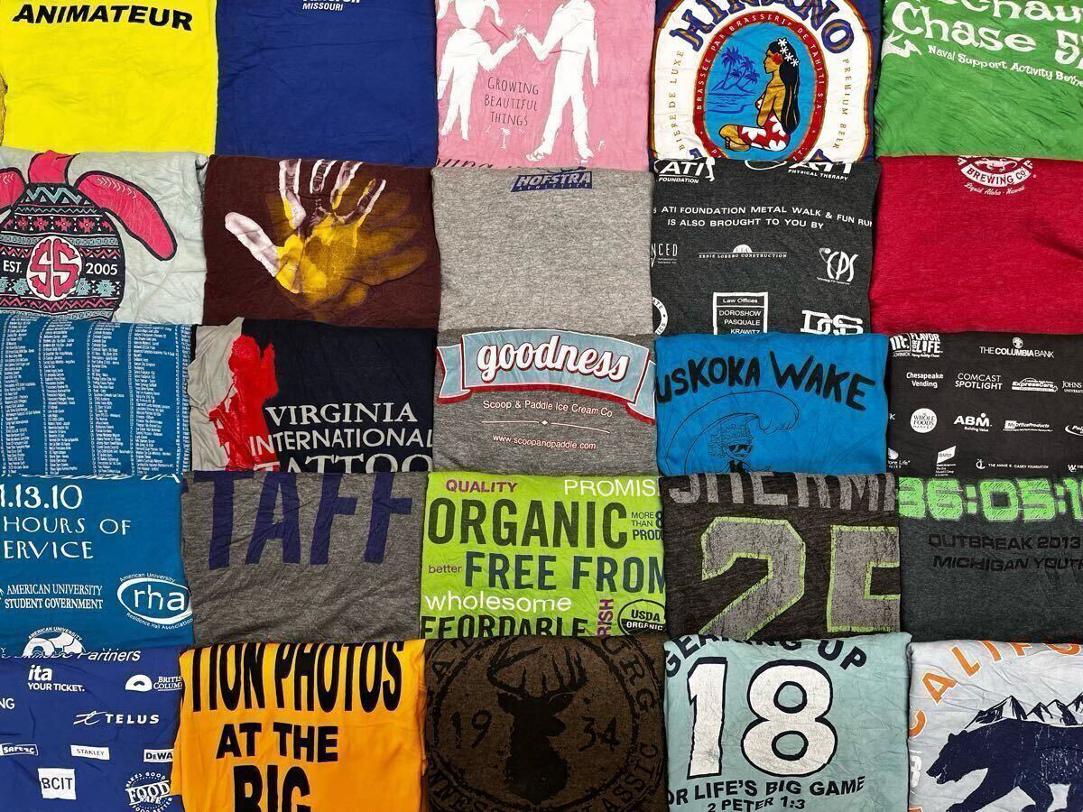 両面バックプリント・バンドロック・キャラクター・チーム物・ロゴ・文字・丸首・Vネックなど様々なデザインのランダムミックスになります。両面、片面サイズ違いの物も含まれている場合もあります。