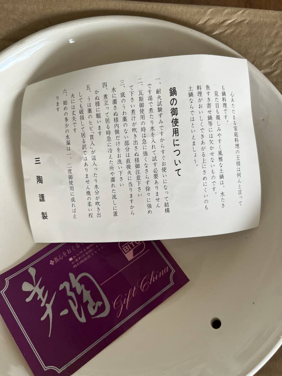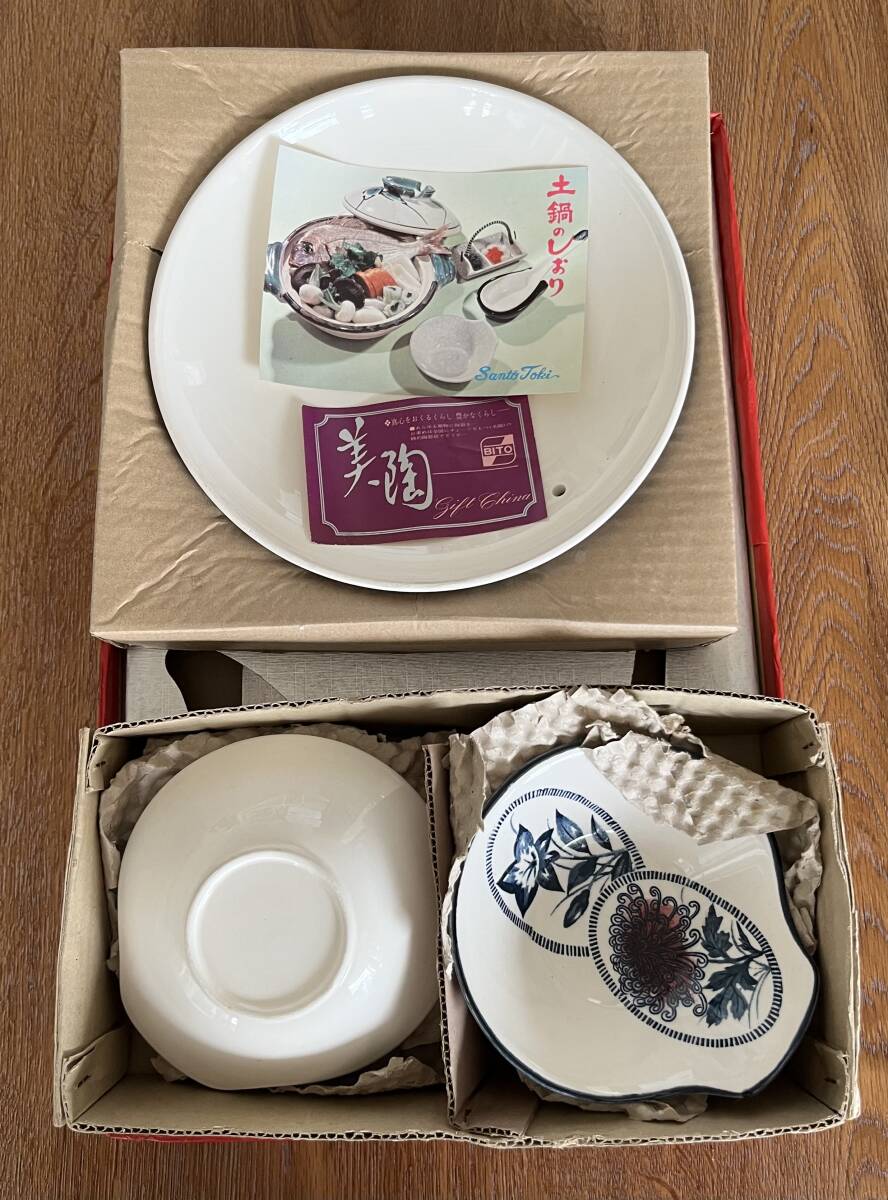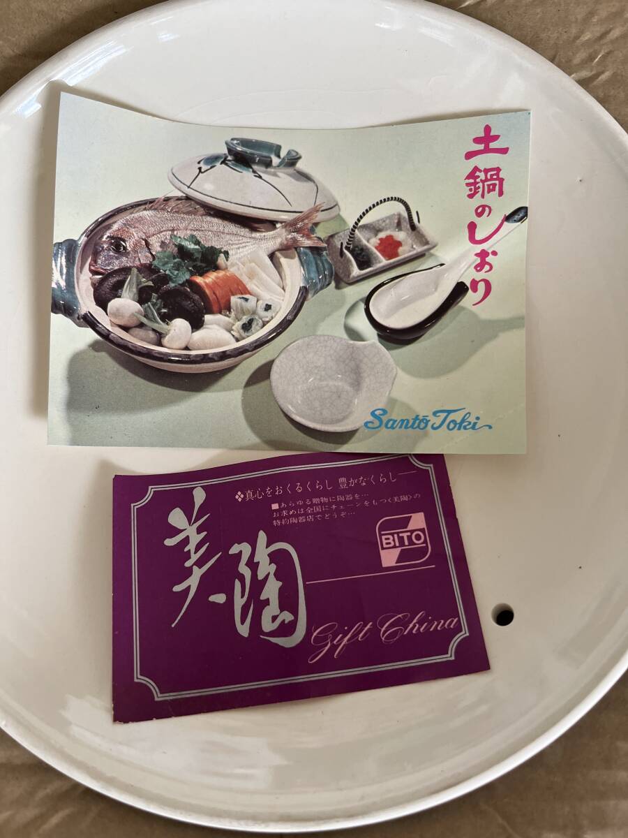 【商品内容】 土鍋セット 美陶 BITO 三陶陶器製 本体と取り皿5客セットです。パッケージは経年劣化していますが中身は未使用で美品です。 【サイズ】土鍋 直径: 約23㎝(取手入れて約27㎝)、取り皿 : 直径約12,5㎝ Clay pot set by BITO, made by Santo Pottery. This is a set of the pot and 5 side plates. The packaging has deteriorated over time, but the contents are unused and in good condition. ※詳細は写真をご覧いただき宜しくお願い致します。 ※送料は定形外郵便またはゆうパック(90サイズ)で、出来るだけ安価となるよう梱包しお知らせいたします。