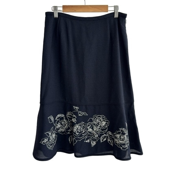ユキコハナイ YUKIKO HANAI ロングスカート サイズ10 L - ダークネイビー レディース 刺繍/フラワー(花) ボトムス