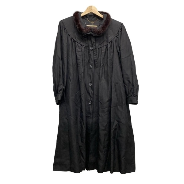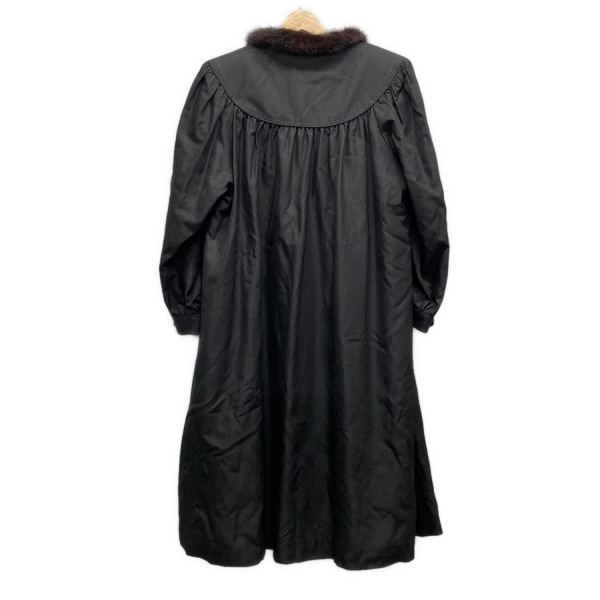 レリアン Leilian サイズ9 M - 黒 レディース 長袖/シルク/ファー/ライナー付き/ギャザー/秋/冬 コート